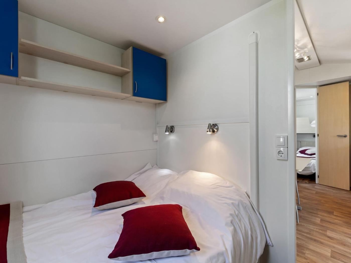 Two-Bedroom Mobile Home. This air-conditioned mobile home comprises 1 living room, 2 separate bedrooms and 2 bathrooms with a bath or a shower. Guests will find a refrigerator and a microwave in the kitchen. The mobile home also provides guests with a barbecue. Featuring a terrace with garden views, this mobile home also provides a tea and coffee maker and a TV. The unit offers 4 beds.