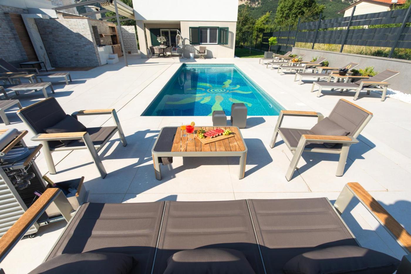Villa with Private Pool. This villa features a infinity pool. Boasting a private entrance, this air-conditioned villa features 1 living room, 4 separate bedrooms and 4 bathrooms with a walk-in shower and a hairdryer. Guests will find a stovetop, a refrigerator, a dishwasher and kitchenware in the well-fitted kitchen. The villa also comes with a barbecue. Featuring a terrace with garden views, this villa also features a washing machine and a flat-screen TV with satellite channels. The unit has 5 beds.