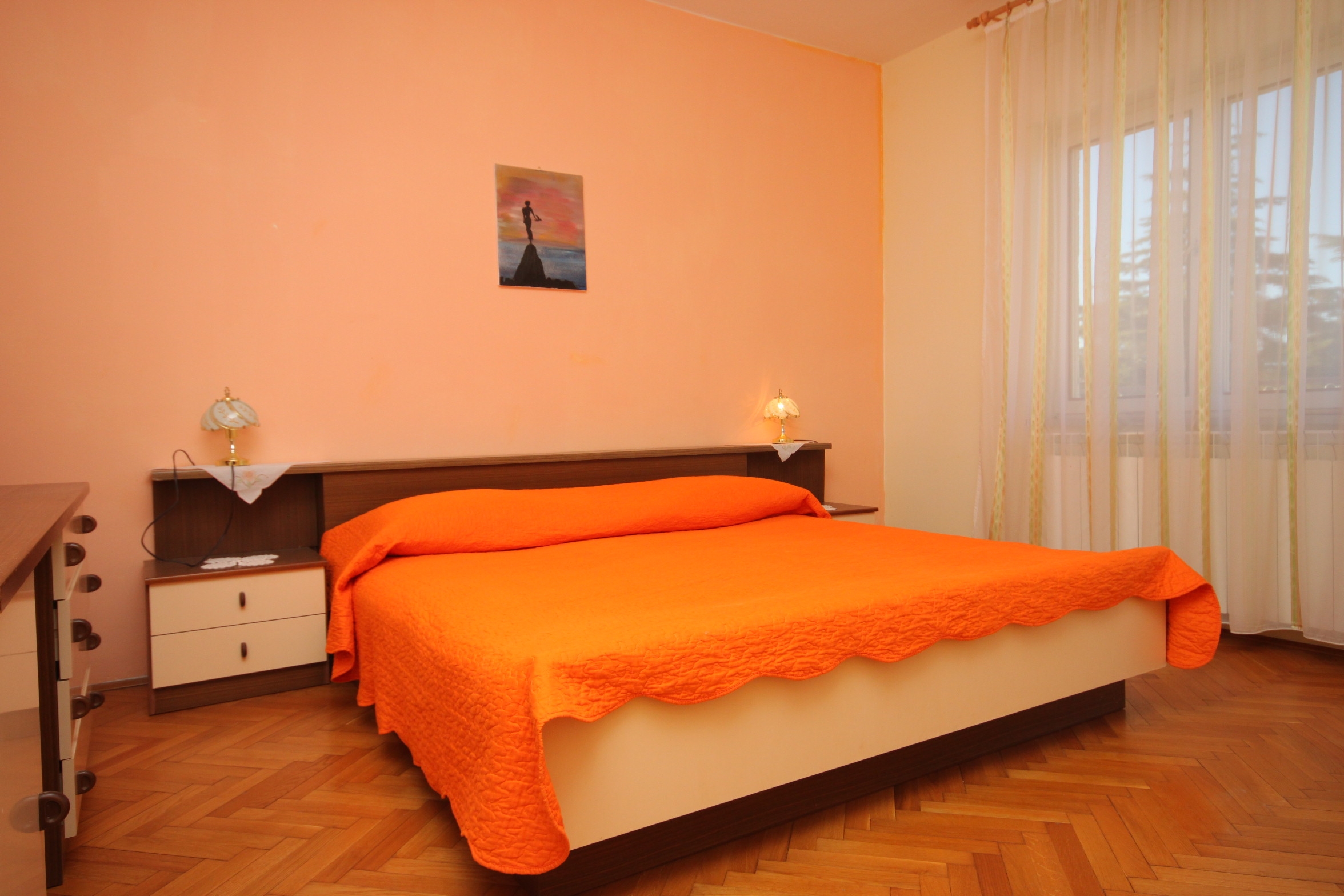 Apartment can accommodate 5 guests. Beds are situated in 2 sleeping rooms, but also in the living room, within 74m2. Guests can use a private terrace to enjoy the warm summer evenings. For full enjoyment and relaxation there is a private barbecue for this accommodation guests only. INCLUDED IN THE PRICE: tourist tax, final cleaning, parking, internet, iron, ironing board, hairdryer. OBLIGATORY ADDITIONAL COSTS: short stay fee (surcharge depending on a number of booked nights: 30% - 1, 20% - 2, 10% - 3). OPTIONAL ADDITIONAL COSTS: air-conditioning (€10.00 per night), laundry (€5.00 washing). The availability of additional services for your chosen dates of stay, as well as their prices (if none are listed) must be checked ahead of time. Any additional services not shown in the price calculation are payable directly to the property owner and only if used by the visitor.