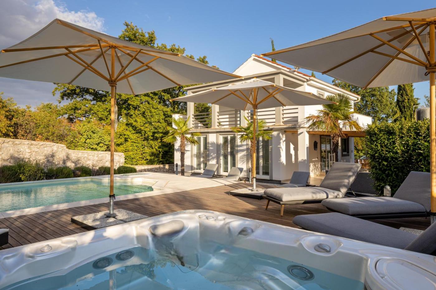 Villa. Guests will have a special experience as this villa provides a private pool and a hot tub. Guests will find a refrigerator, kitchenware and a tea and coffee maker in the kitchen. The villa also has a barbecue. The spacious villa offers air conditioning, a washing machine, a terrace with garden views as well as a shared bathroom featuring a walk-in shower. The unit offers 7 beds.