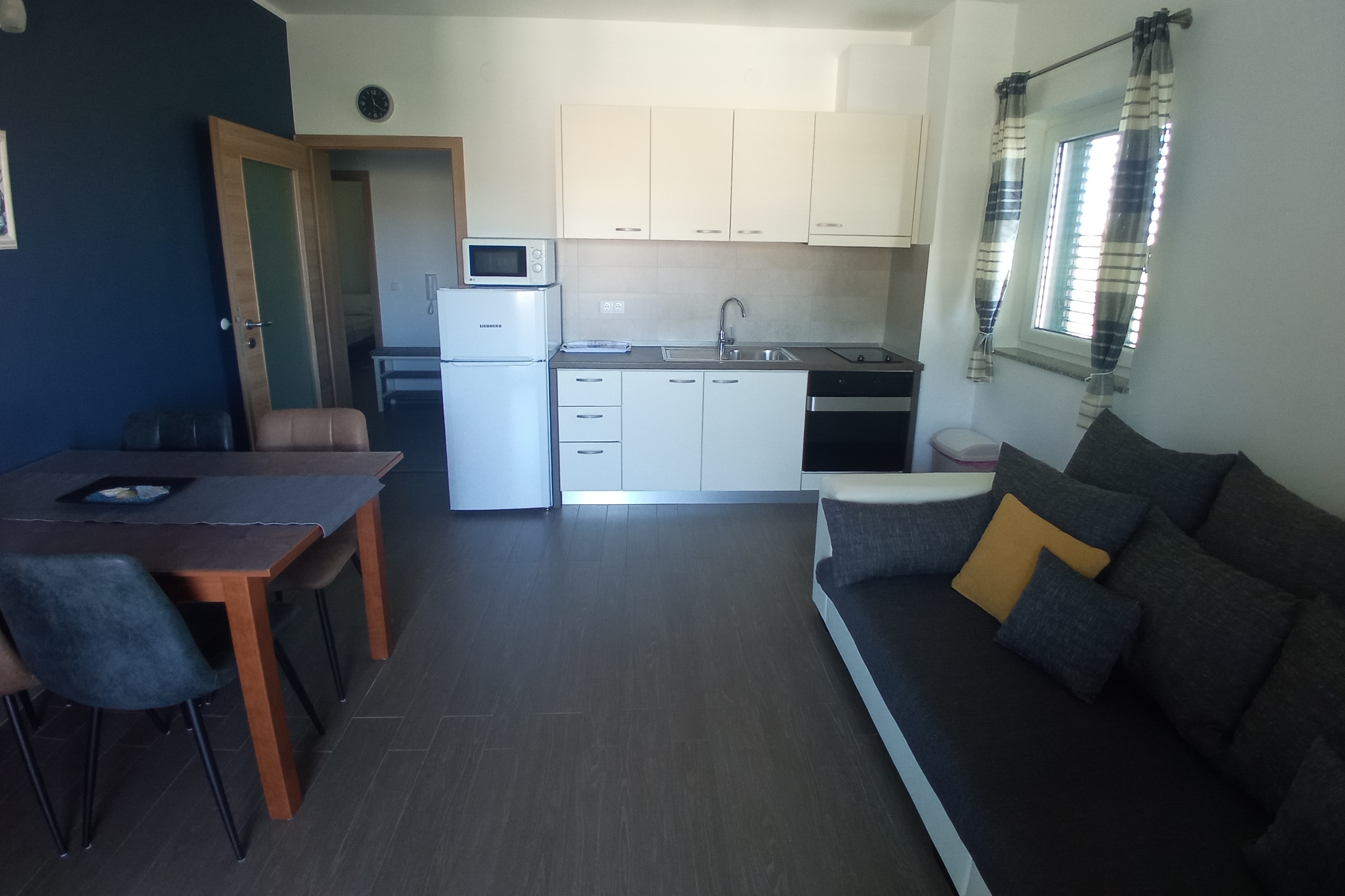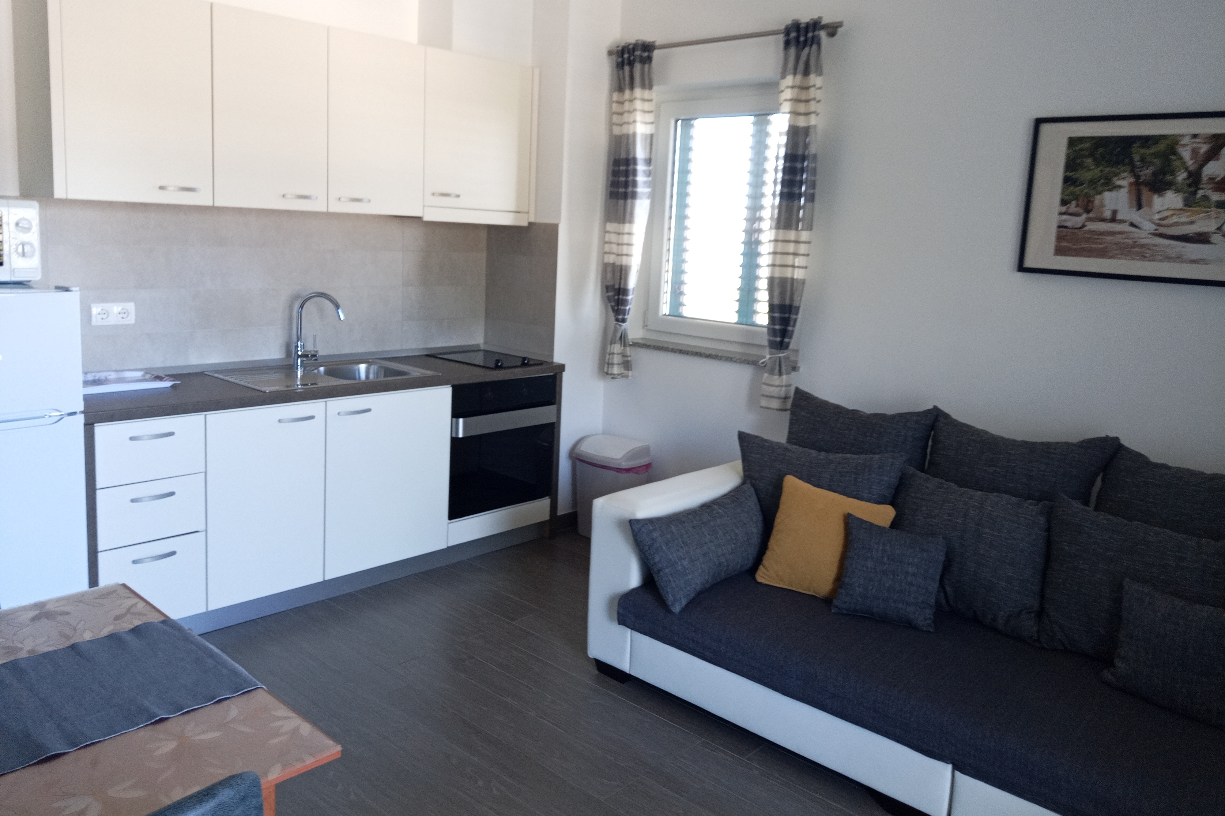 Apartment can accommodate 4 guests. Beds are situated in 2 sleeping rooms, within 55m2. Guests can use a private balcony to enjoy the warm summer evenings. The apartment offers the sea view. Food can be prepared using barbecue which is shared with other guests too. INCLUDED IN THE PRICE: tourist tax, final cleaning, air-conditioning, parking, internet, iron, ironing board, hairdryer. OBLIGATORY ADDITIONAL COSTS: short stay fee (surcharge depending on a number of booked nights: 30% - 1, 20% - 2, 10% - 3). The availability of additional services for your chosen dates of stay, as well as their prices (if none are listed) must be checked ahead of time. Any additional services not shown in the price calculation are payable directly to the property owner and only if used by the visitor.