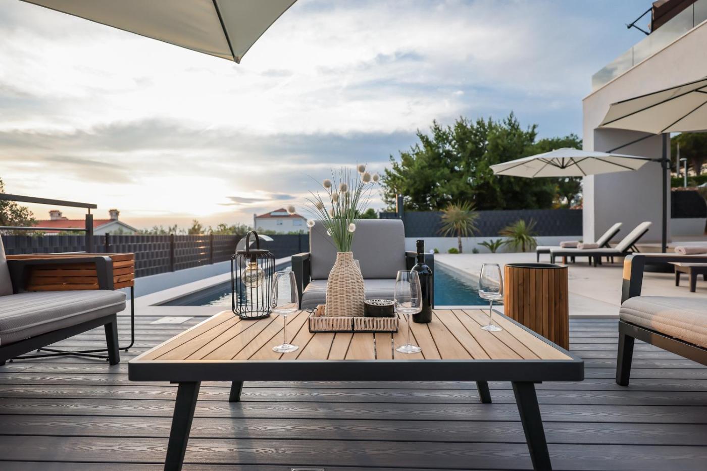 Boasting air-conditioned accommodation with a private pool, pool view and a patio, Villa Dekorti is situated in Kožino. This property offers access to a balcony, a pool table, free private parking and free WiFi. The property is non-smoking and is located 400 metres from Veliki mul Beach.