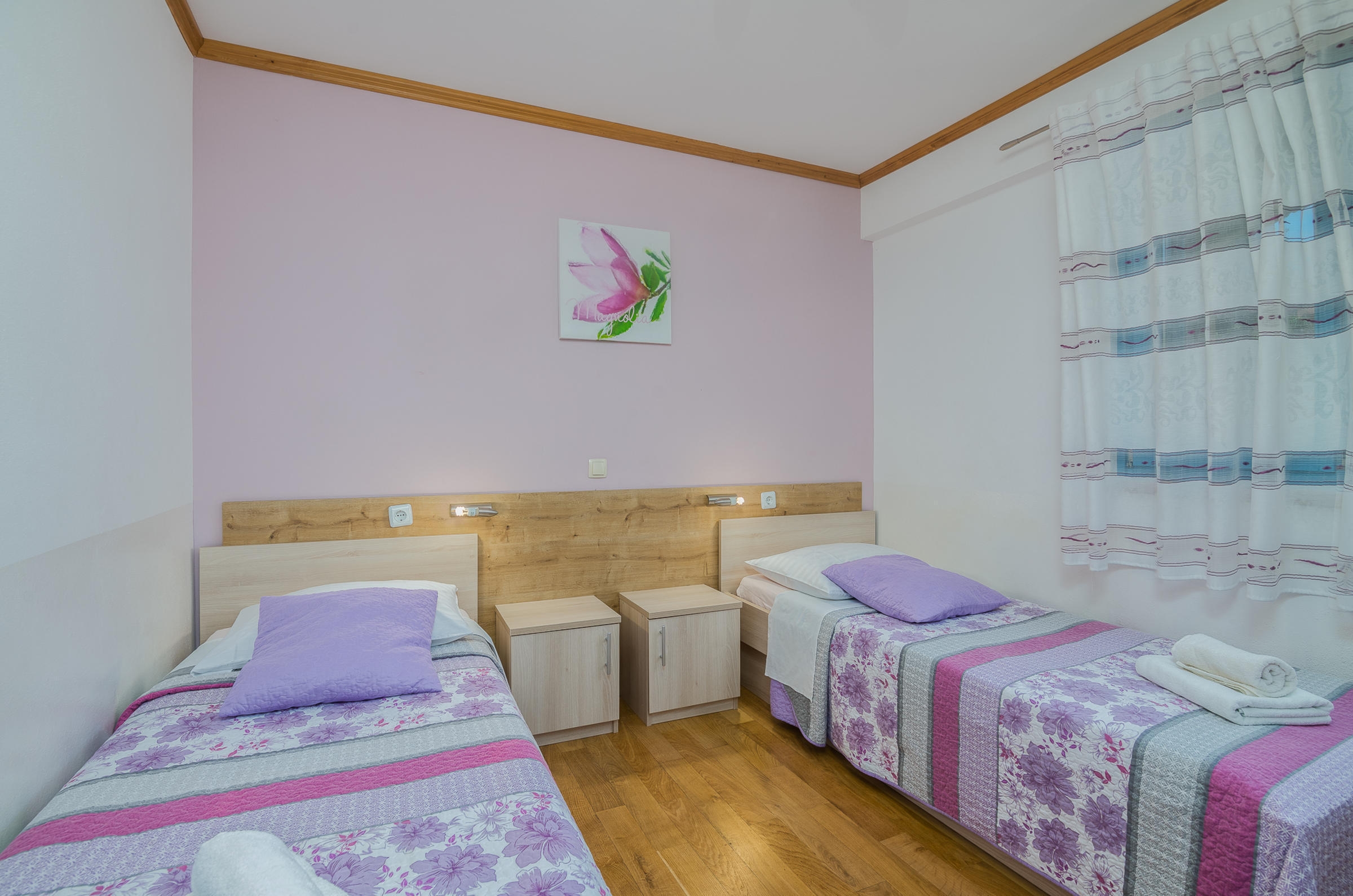 Apartment can accommodate 5 guests. Beds are situated in 2 sleeping rooms, but also in the living room, within 53m2. Guests can use a private terrace to enjoy the warm summer evenings. Food can be prepared using barbecue which is shared with other guests too. INCLUDED IN THE PRICE: tourist tax, final cleaning, air-conditioning, parking, internet, baby cot. OBLIGATORY ADDITIONAL COSTS: short stay fee (surcharge depending on a number of booked nights: 30% - 1, 20% - 2, 10% - 3). The availability of additional services for your chosen dates of stay, as well as their prices (if none are listed) must be checked ahead of time. Any additional services not shown in the price calculation are payable directly to the property owner and only if used by the visitor.