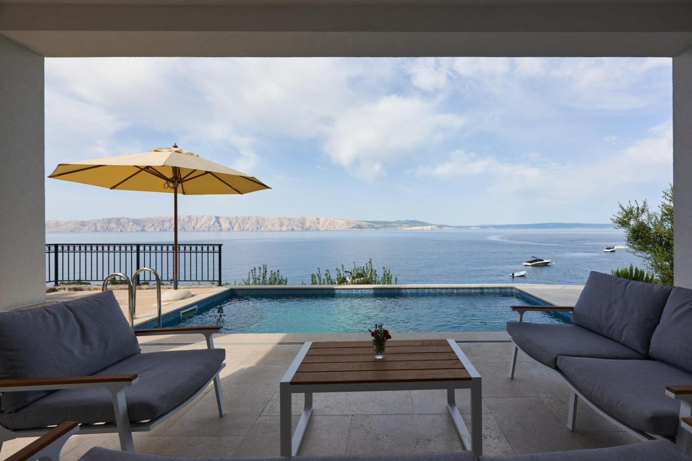 Villa with Sea View. The pool with a view and fireplace are the standout features of this villa. Boasting a private entrance, this air-conditioned villa comes with 1 living room, 4 separate bedrooms and 3 bathrooms with a bath and a shower. Guests will find a stovetop, a refrigerator, a dishwasher and kitchenware in the well-fitted kitchen. The villa also includes a barbecue. Featuring a terrace with sea views, this villa also features a washing machine and a flat-screen TV with satellite channels. The unit has 4 beds.