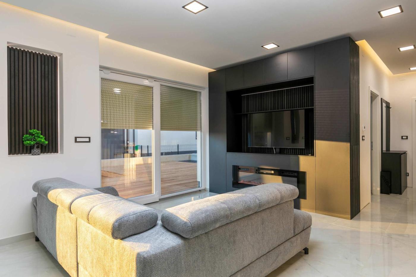 Villa Franka with pool near Medulin features 4 bedrooms, a fully equipped kitchen with a dishwasher and an oven, a washing machine, and 4 bathrooms with a hair dryer and free toiletries. Towels and bed linen are available in the villa. The accommodation offers a fireplace.