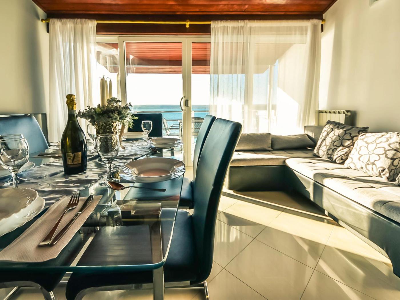 Apartment. This spacious apartment includes 3 bedrooms, a kitchen and 2 bathrooms with a shower. Guests can make meals in the kitchen that is fitted with a stovetop, a refrigerator, a dishwasher and kitchenware. The air-conditioned apartment offers a TV with satellite channels, a washing machine, a dining area, heating as well as sea views. The unit has 4 beds.