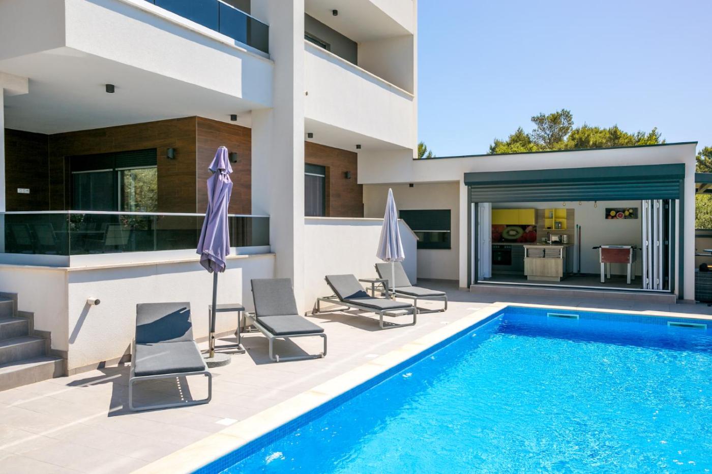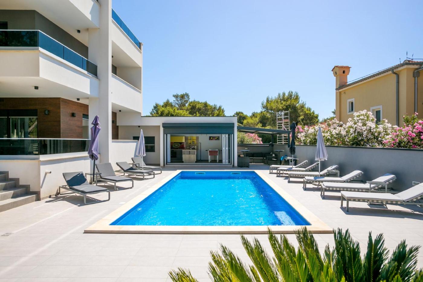 Boasting air-conditioned accommodation with a balcony, Villa Histra isin Medulin. With pool views, this accommodation offers a patio. There is an outdoor pool and guests can make use of free WiFi, free private parking and an electric vehicle charging station.