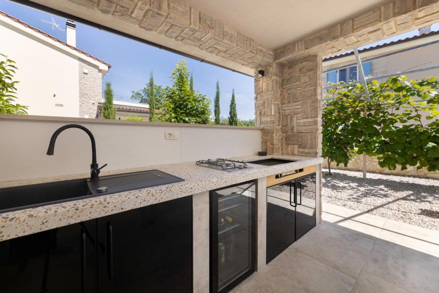 Villa with Private Pool. This villas standout features are the private pool and fireplace. Guests will find a stovetop, a dishwasher, kitchenware and an oven in the fully equipped kitchen. The villa also features a barbecue. The spacious villa offers air conditioning, a washing machine, a terrace with garden views as well as a shared bathroom boasting a walk-in shower. The unit has 7 beds.