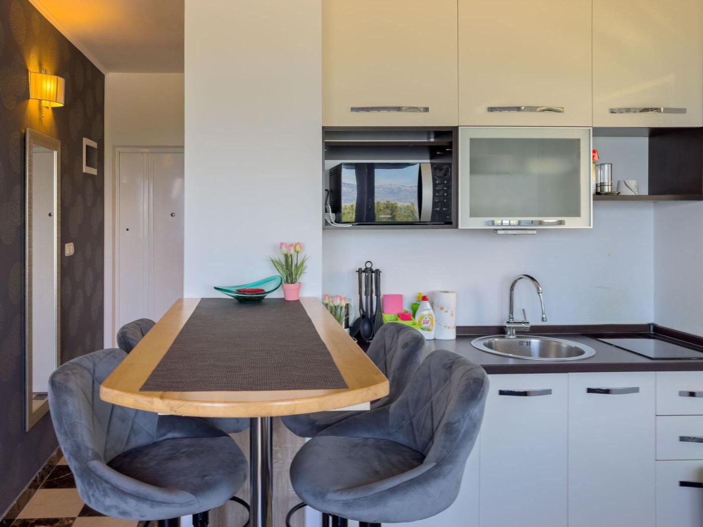 Set in Nin, 200 metres from Queens Beach and 46 km from Kornati Marina, Angelika offers air conditioning. This beachfront property offers access to free WiFi and free private parking. The property offers a childrens playground and outdoor furniture.