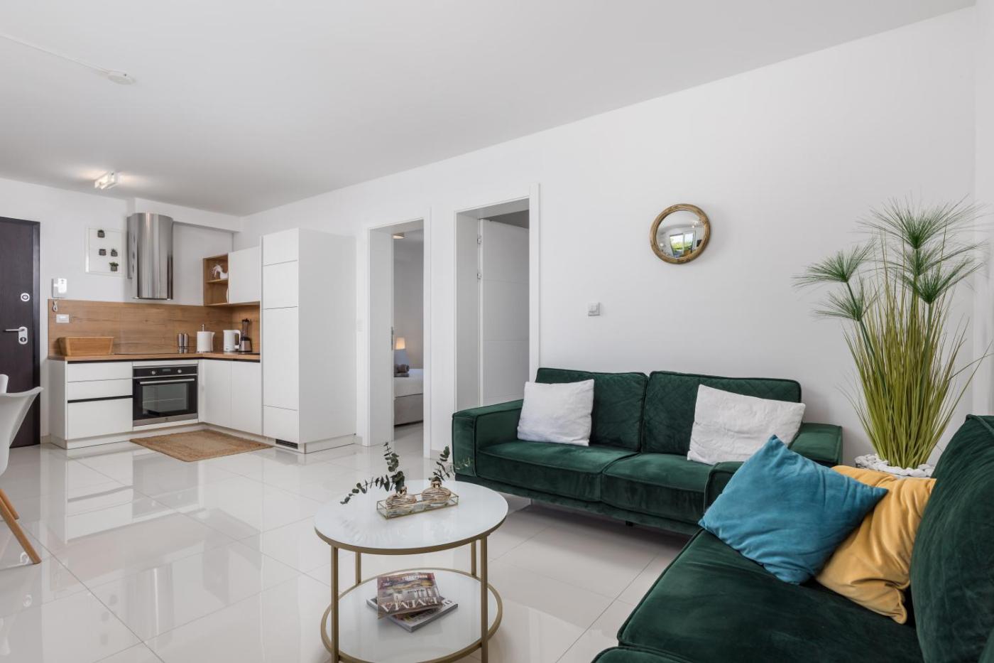 Two-Bedroom Apartment. Boasting a private entrance, this air-conditioned apartment features 1 living room, 2 separate bedrooms and 1 bathroom with a shower and a hairdryer. The well-fitted kitchen features a stovetop, a refrigerator, a dishwasher and kitchenware. This apartment has a washing machine, soundproof walls, flat-screen TV with satellite channels, as well as winechampagne for guests. The unit has 2 beds.
