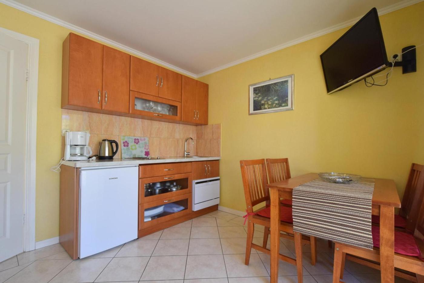 One-Bedroom Apartment - First Floor. This air-conditioned apartment is comprised of 1 living room, 1 separate bedroom and 1 bathroom with a shower. Guests will find a stovetop, a refrigerator, a dishwasher and a tea and coffee maker in the kitchenette. The apartment also has a barbecue. The apartment features a balcony. The unit offers 2 beds.