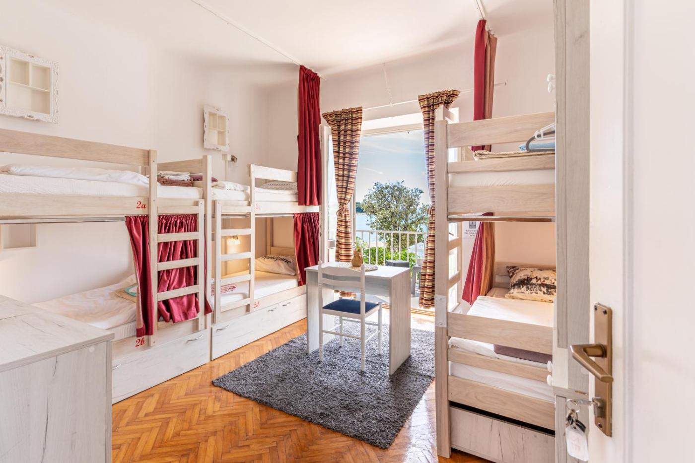 Bed in 4-Bed Mixed Dormitory Room with Balcony and Sea View. This bed in dormitory has a balcony, kitchen and kitchenware. ;