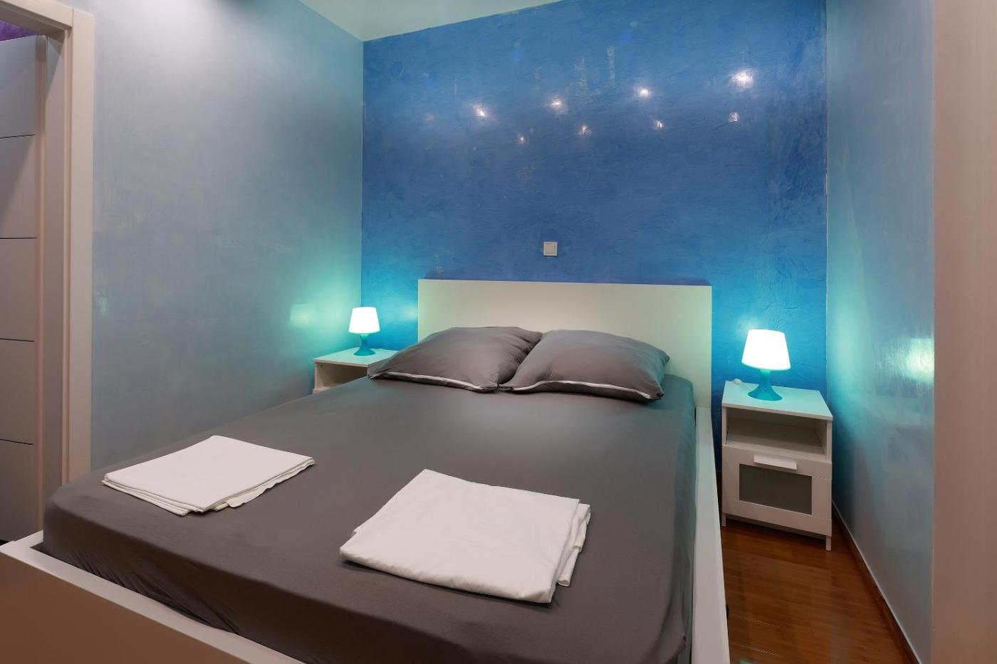 Two-Bedroom Apartment. Featuring a private entrance, this air-conditioned apartment consists of 1 living room, 2 separate bedrooms and 1 bathroom with a shower and a hairdryer. Guests will find a stovetop, a refrigerator, an oven and an electric kettle in the well-equipped kitchen. The apartment also offers a barbecue. A seating area with a flat-screen TV, a dining area and a terrace are provided in this spacious apartment. The unit offers 4 beds. ;