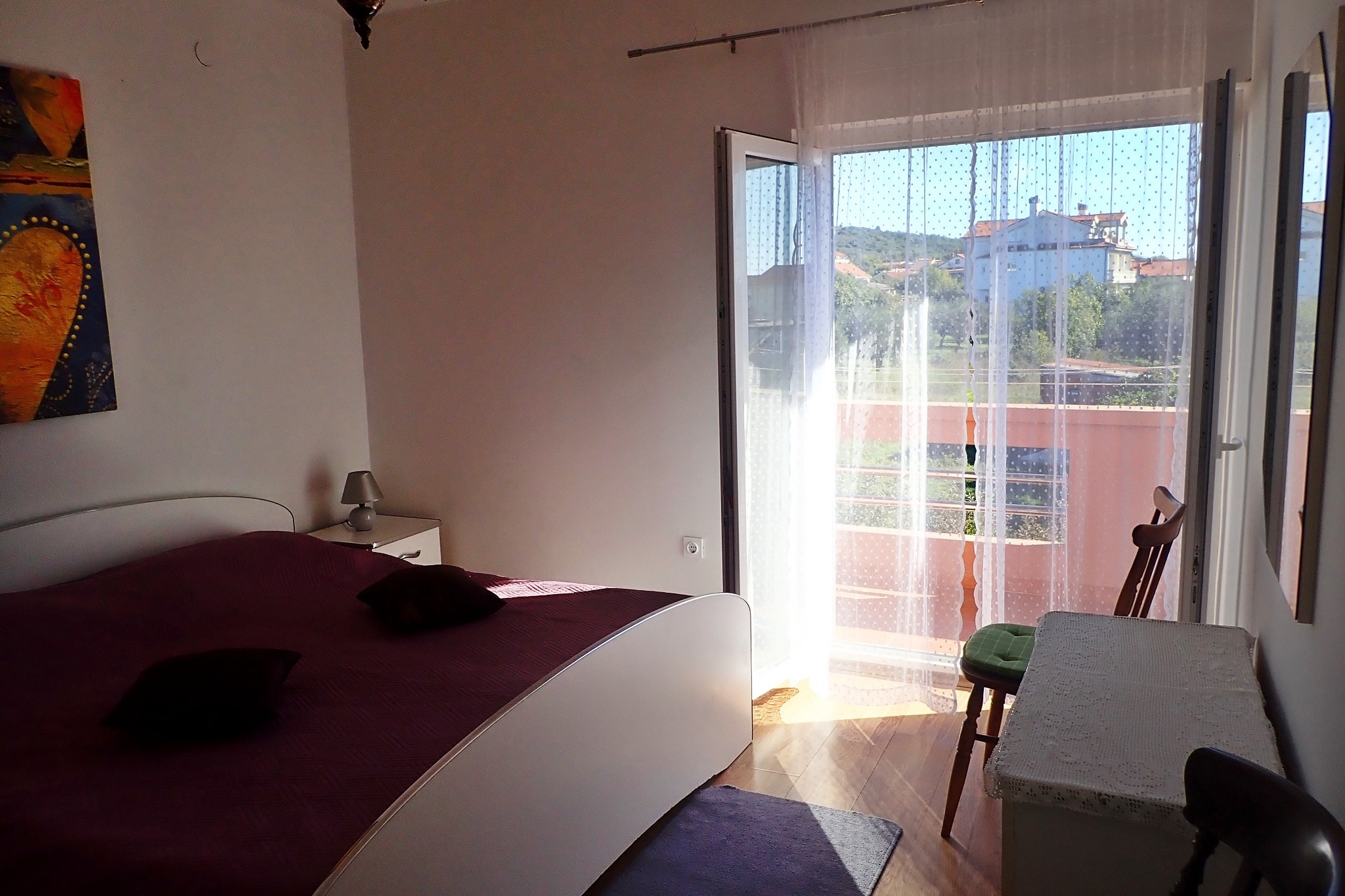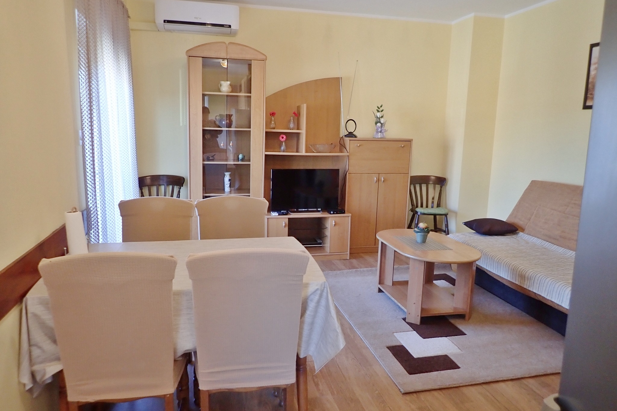 Apartment can accommodate 6 guests. Beds are situated in 2 sleeping rooms, but also in the living room, within 70m2. Guests can use a private balcony to enjoy the warm summer evenings. Food can be prepared using barbecue which is shared with other guests too. INCLUDED IN THE PRICE: tourist tax, final cleaning, air-conditioning, parking, internet, iron, ironing board. The availability of additional services for your chosen dates of stay, as well as their prices (if none are listed) must be checked ahead of time. Any additional services not shown in the price calculation are payable directly to the property owner and only if used by the visitor.