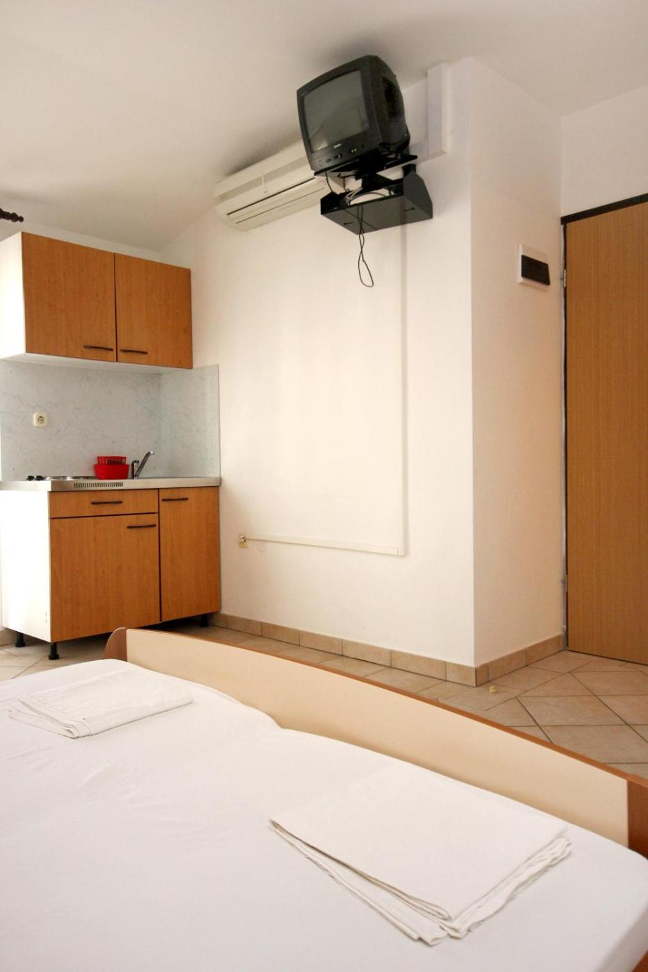 Studio with Terrace and Sea View. The studio includes a private bathroom fitted with a shower. Meals can be prepared in the well-fitted kitchenette, which features a stovetop, a refrigerator and kitchenware. Boasting a terrace with sea views, this studio also features air conditioning and a TV. The unit has 2 beds. ;