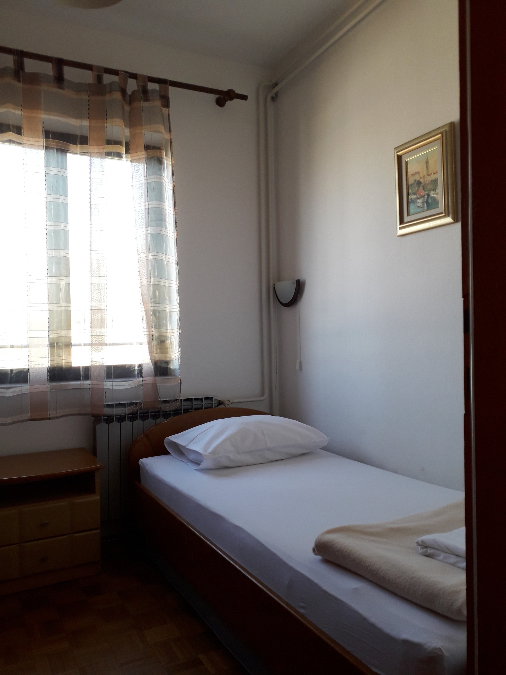 Apartment can accommodate 4 guests. Beds are situated in 2 sleeping rooms, within 33m2. Guests can use a private terrace to enjoy the warm summer evenings. The apartment offers the sea view. Food can be prepared using barbecue which is shared with other guests too. This accommodation unit welcomes pets at no additional costs. INCLUDED IN THE PRICE: tourist tax, final cleaning, air-conditioning, parking, internet, pets. OBLIGATORY ADDITIONAL COSTS: short stay fee (surcharge depending on a number of booked nights: 30% - 1, 20% - 2, 10% - 3). The availability of additional services for your chosen dates of stay, as well as their prices (if none are listed) must be checked ahead of time. Any additional services not shown in the price calculation are payable directly to the property owner and only if used by the visitor.