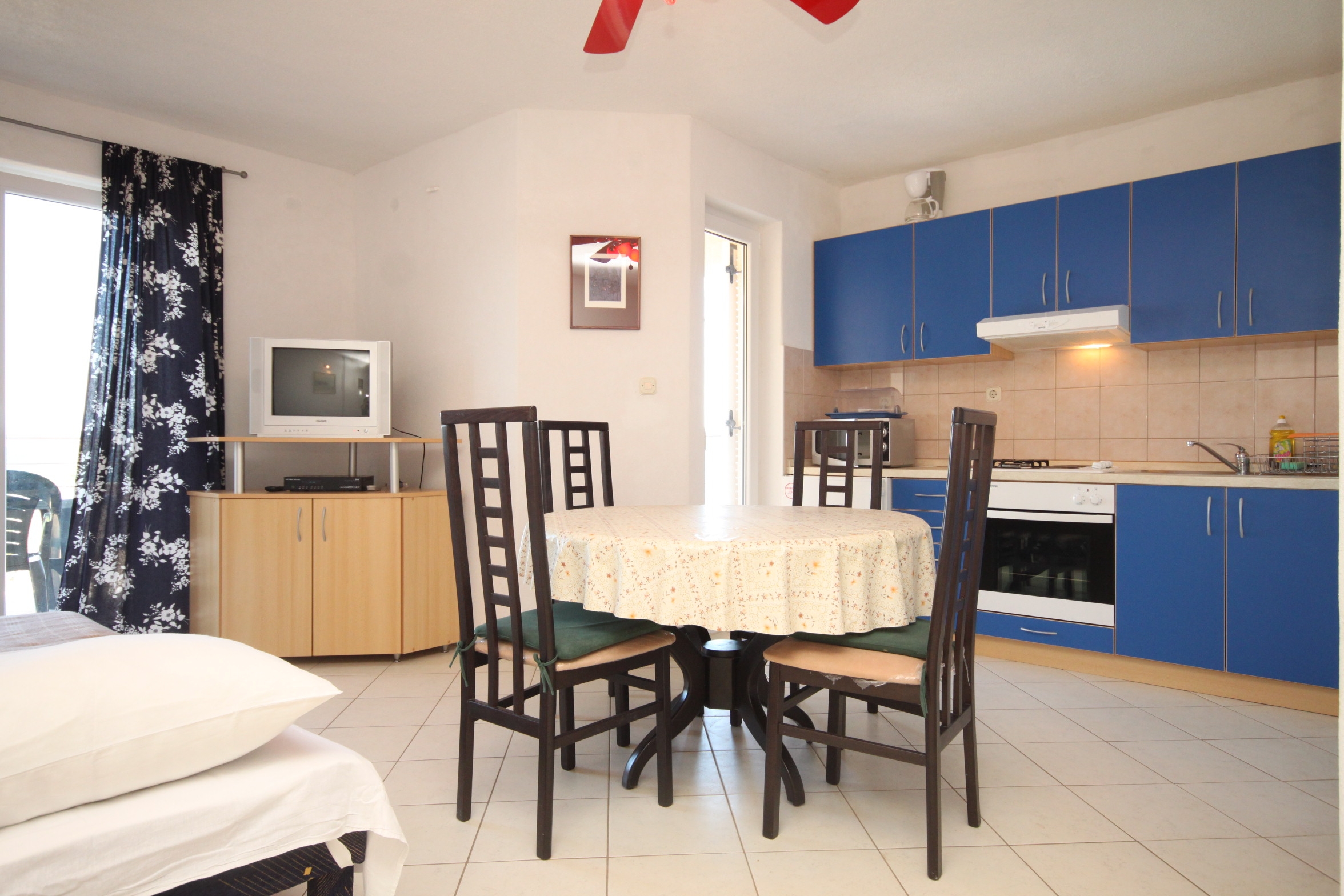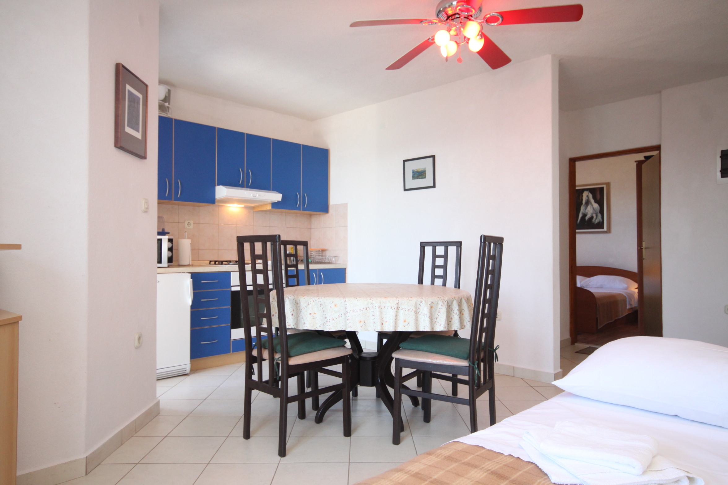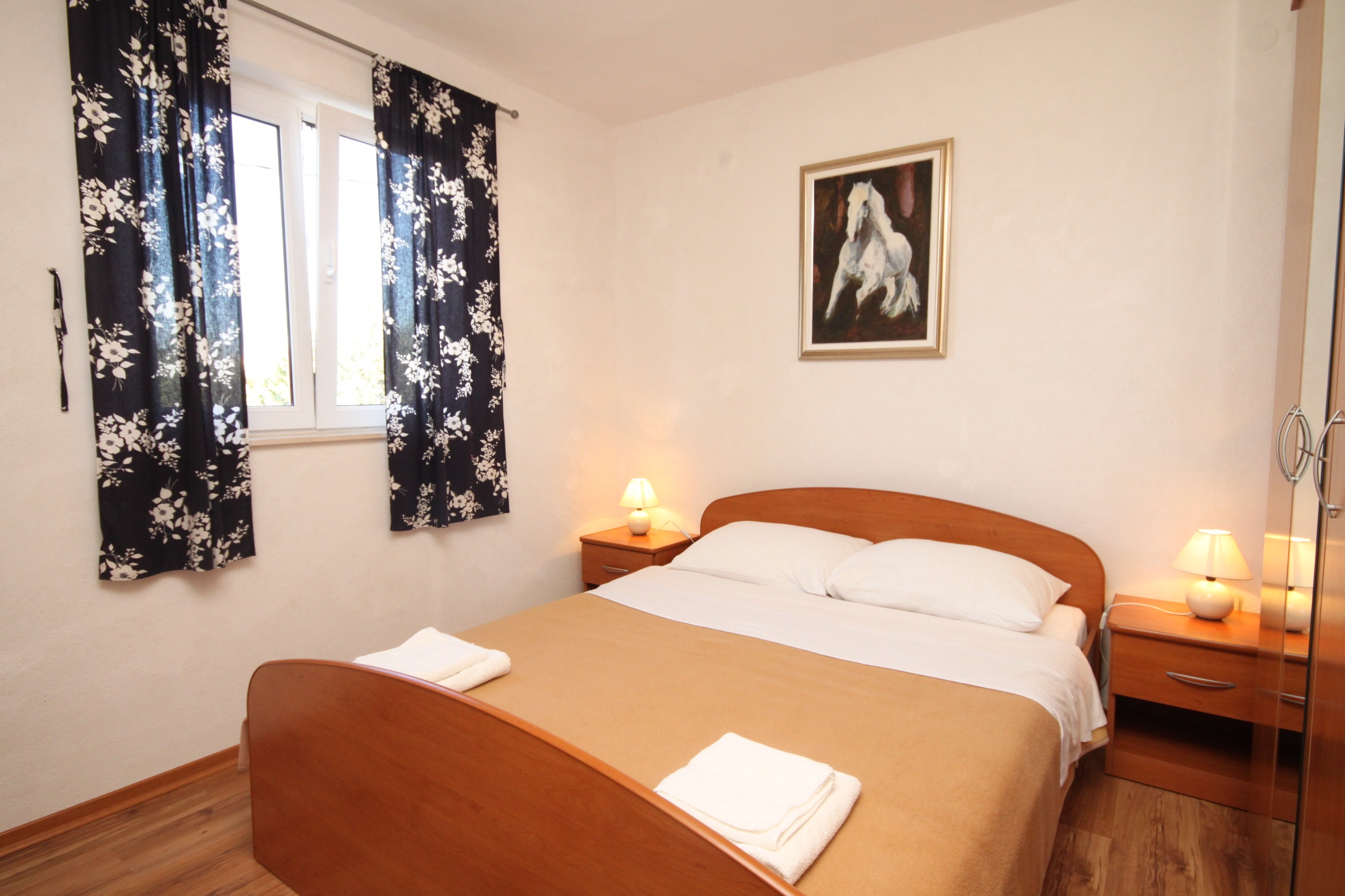 Apartment can accommodate 4 guests. Beds are situated in 1 sleeping rooms, but also in the living room, within 35m2. Guests can use a private terrace to enjoy the warm summer evenings. The apartment offers the sea view. Food can be prepared using barbecue which is shared with other guests too. INCLUDED IN THE PRICE: tourist tax, final cleaning, air-conditioning, parking, internet, additional bed, iron, ironing board, hairdryer. OPTIONAL ADDITIONAL COSTS: boat mooring (€50.00 per night). The availability of additional services for your chosen dates of stay, as well as their prices (if none are listed) must be checked ahead of time. Any additional services not shown in the price calculation are payable directly to the property owner and only if used by the visitor.