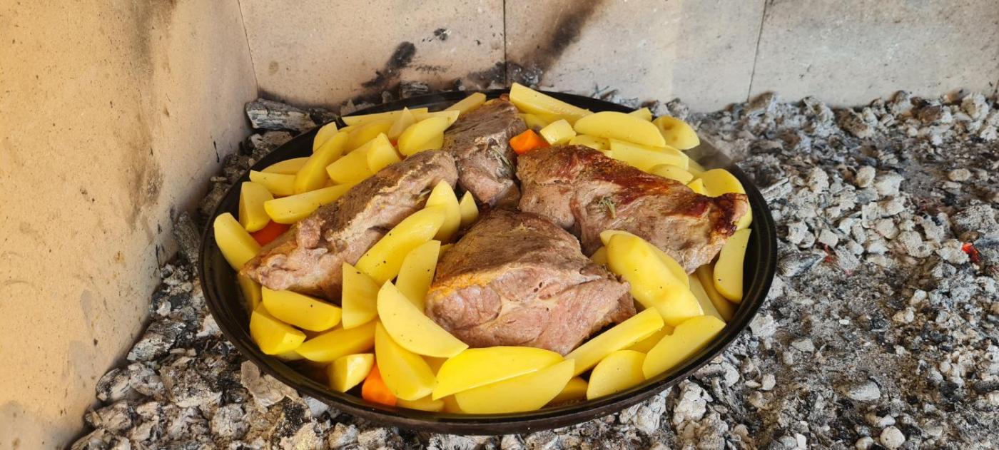 Guests can also warm themselves near outdoor fireplace after a day of cycling.