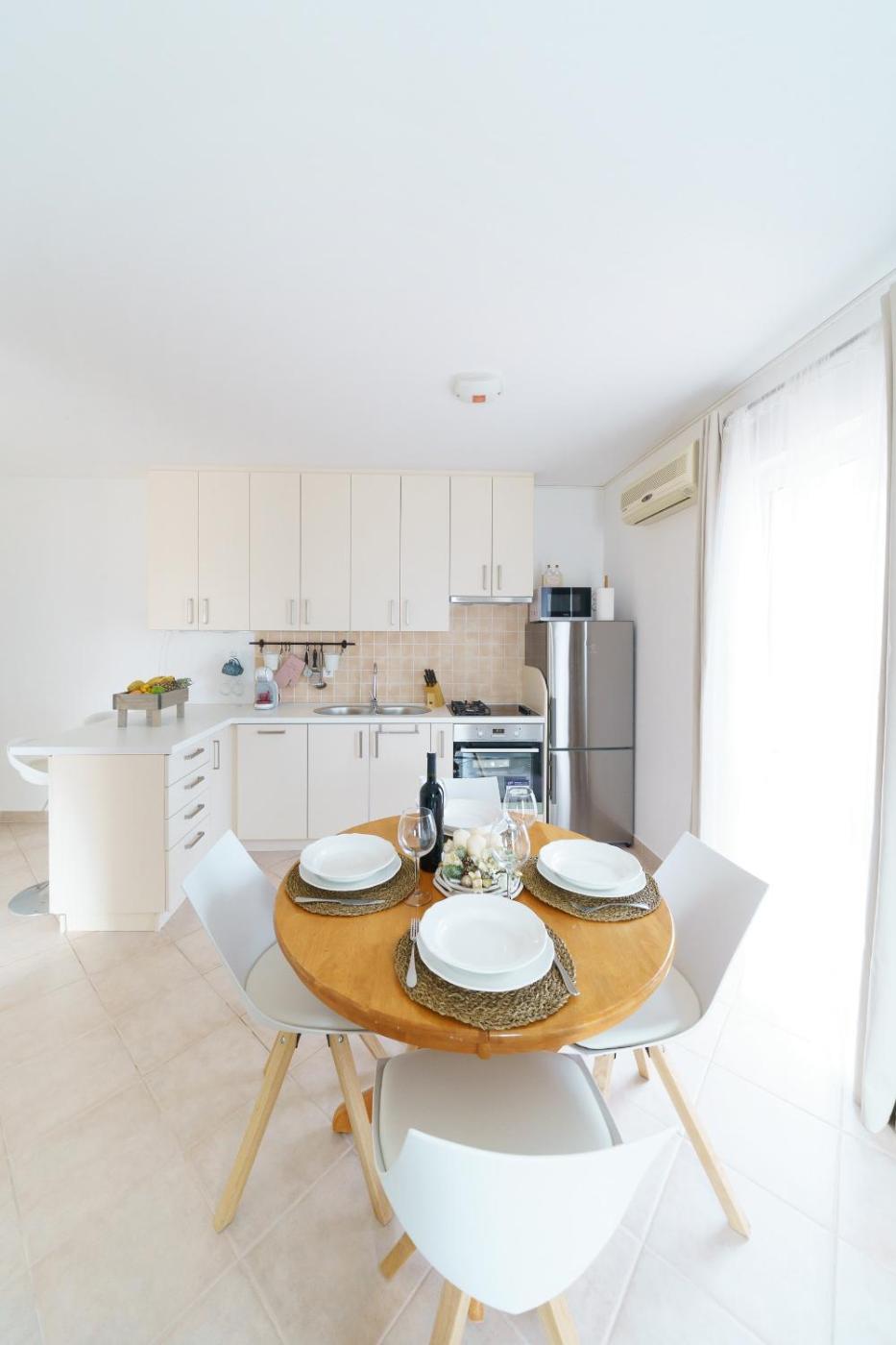 One-Bedroom Apartment. Featuring a private entrance, this air-conditioned apartment consists of 1 living room, 1 separate bedroom and 1 bathroom with a shower. In the well-fitted kitchen, guests will find a stovetop, a refrigerator, kitchenware and an oven. The apartment provides a washing machine, a seating area, a dining area, a sofa, as well as a TV with satellite channels. The unit offers 2 beds.
