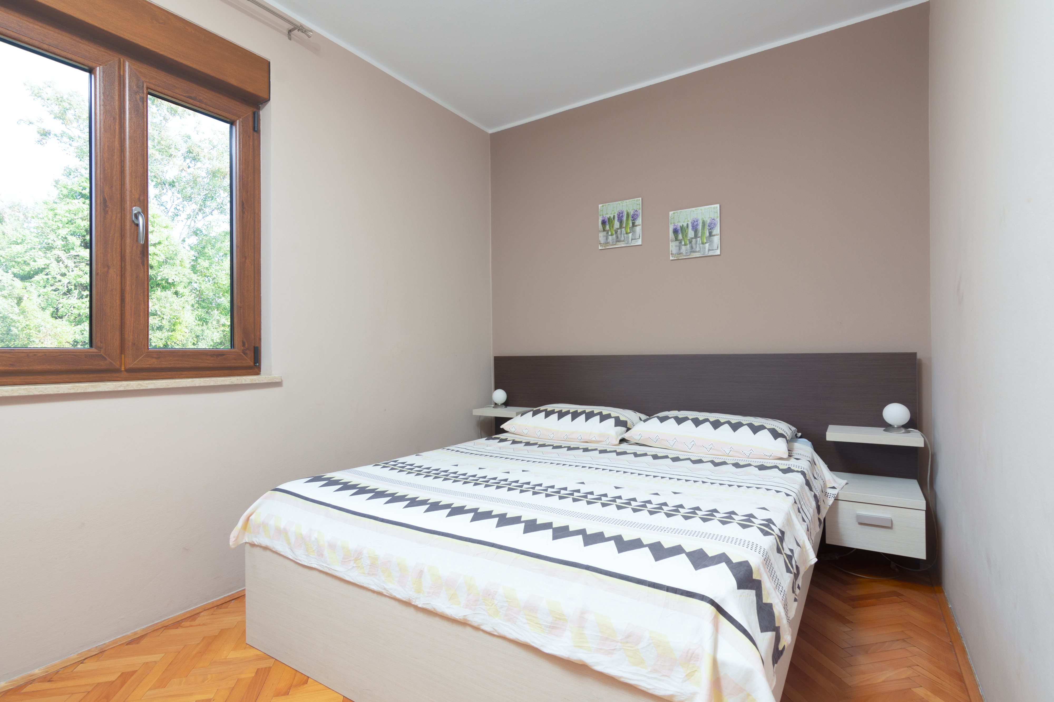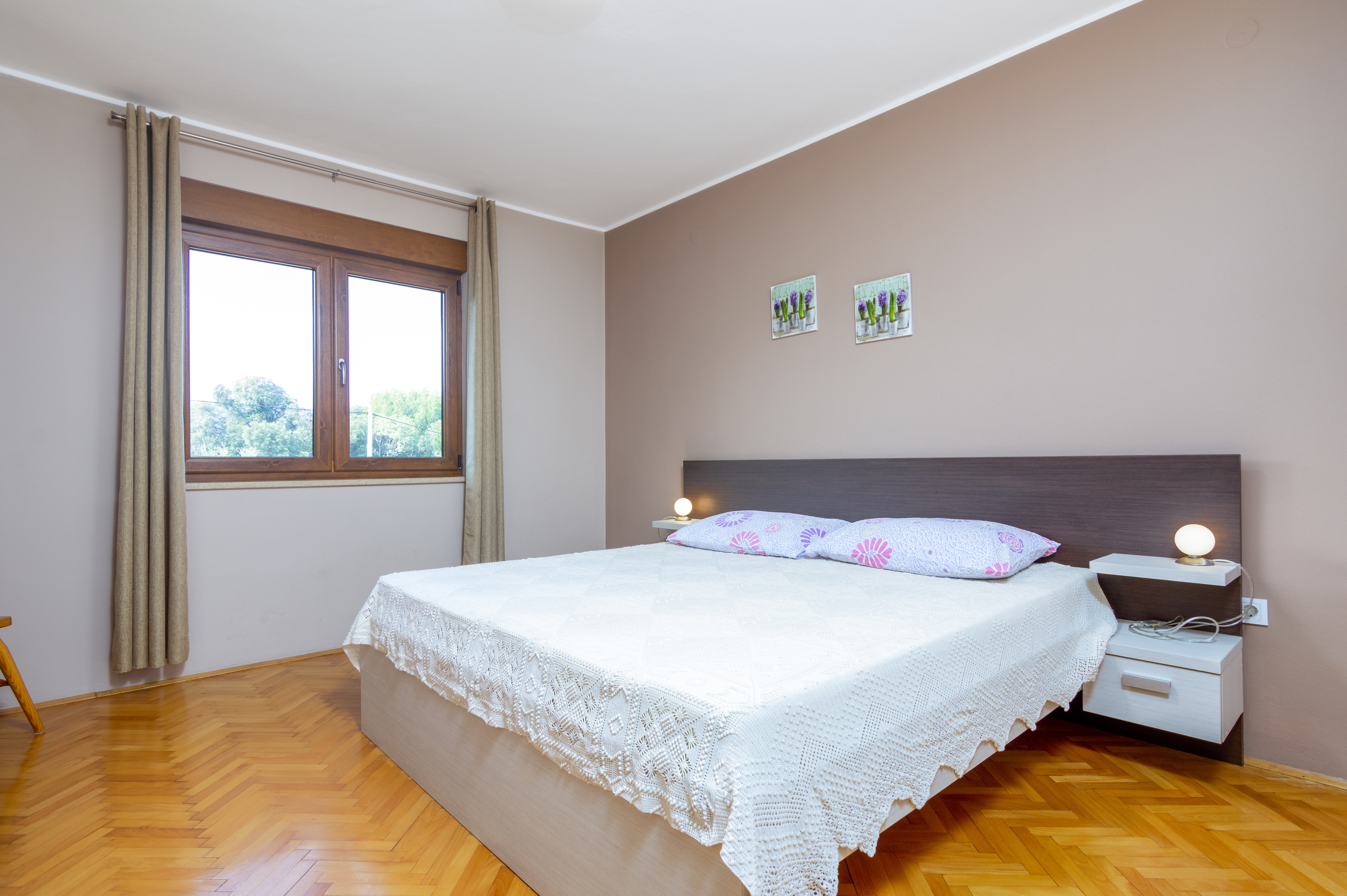 Apartment can accommodate 6 guests. Beds are situated in 3 sleeping rooms, within 76m2. Guests can use a private terrace to enjoy the warm summer evenings. INCLUDED IN THE PRICE: tourist tax, final cleaning, parking, internet, iron, ironing board, hairdryer. OBLIGATORY ADDITIONAL COSTS: short stay fee (surcharge depending on a number of booked nights: 30% - 1, 20% - 2, 10% - 3). OPTIONAL ADDITIONAL COSTS: air-conditioning (€5.00 per night). The availability of additional services for your chosen dates of stay, as well as their prices (if none are listed) must be checked ahead of time. Any additional services not shown in the price calculation are payable directly to the property owner and only if used by the visitor. Discounts to the base price: free day 14=13 (for reservations of 14 or more days you get one free day for the stay until 31122026).