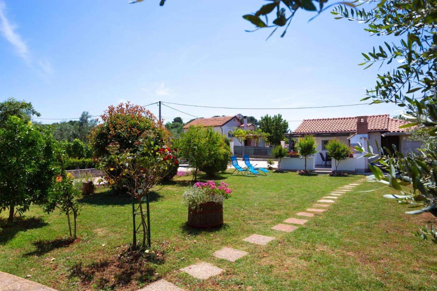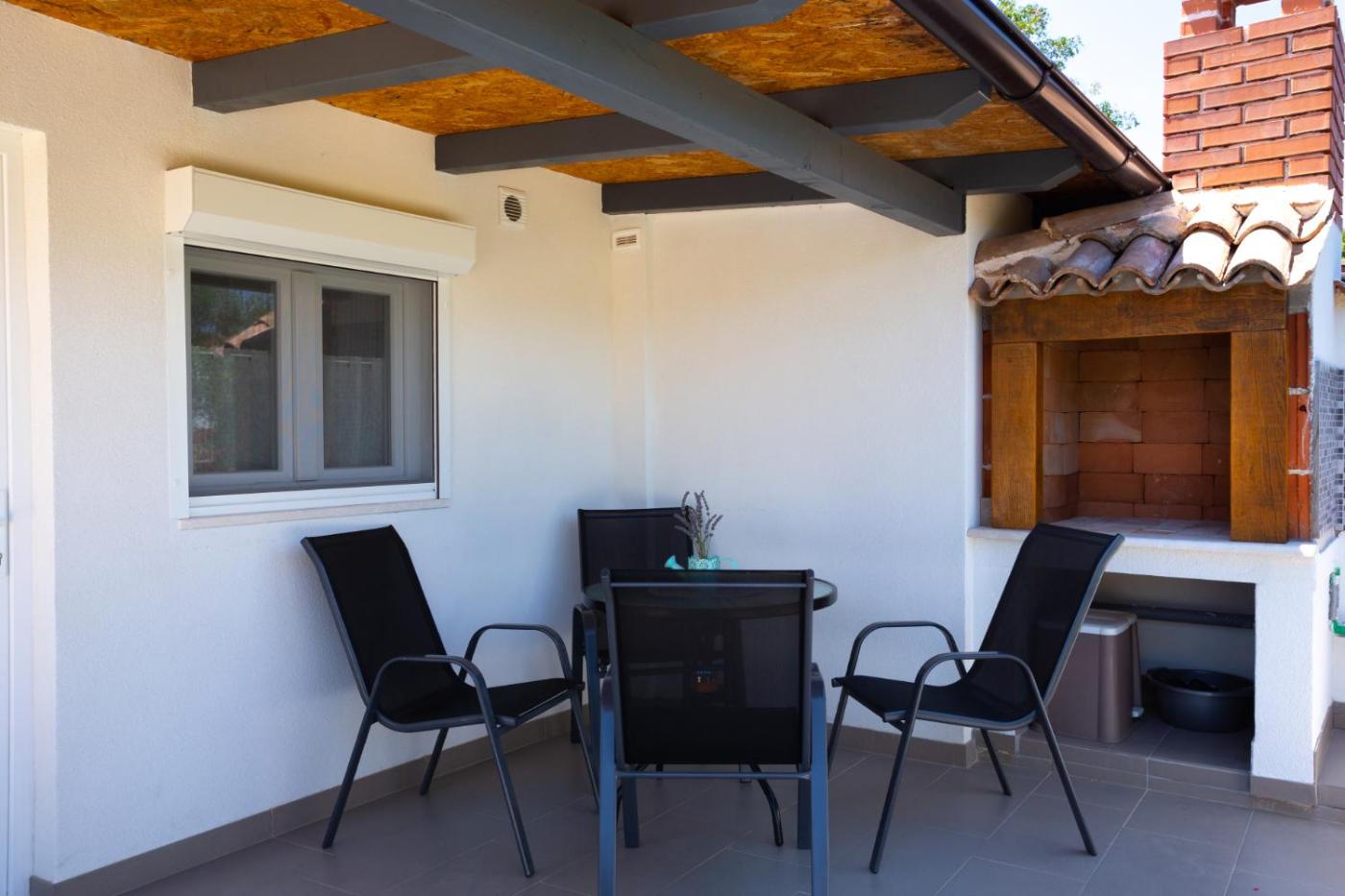 One-Bedroom House. Boasting a private entrance, this air-conditioned holiday home includes 1 living room, 1 separate bedroom and 1 bathroom with a shower. Guests will find a stovetop, a refrigerator, kitchenware and an oven in the well-equipped kitchen. The holiday home also features a barbecue. Featuring a terrace with garden views, this holiday home also offers a washing machine and a flat-screen TV with satellite channels. The unit has 2 beds.