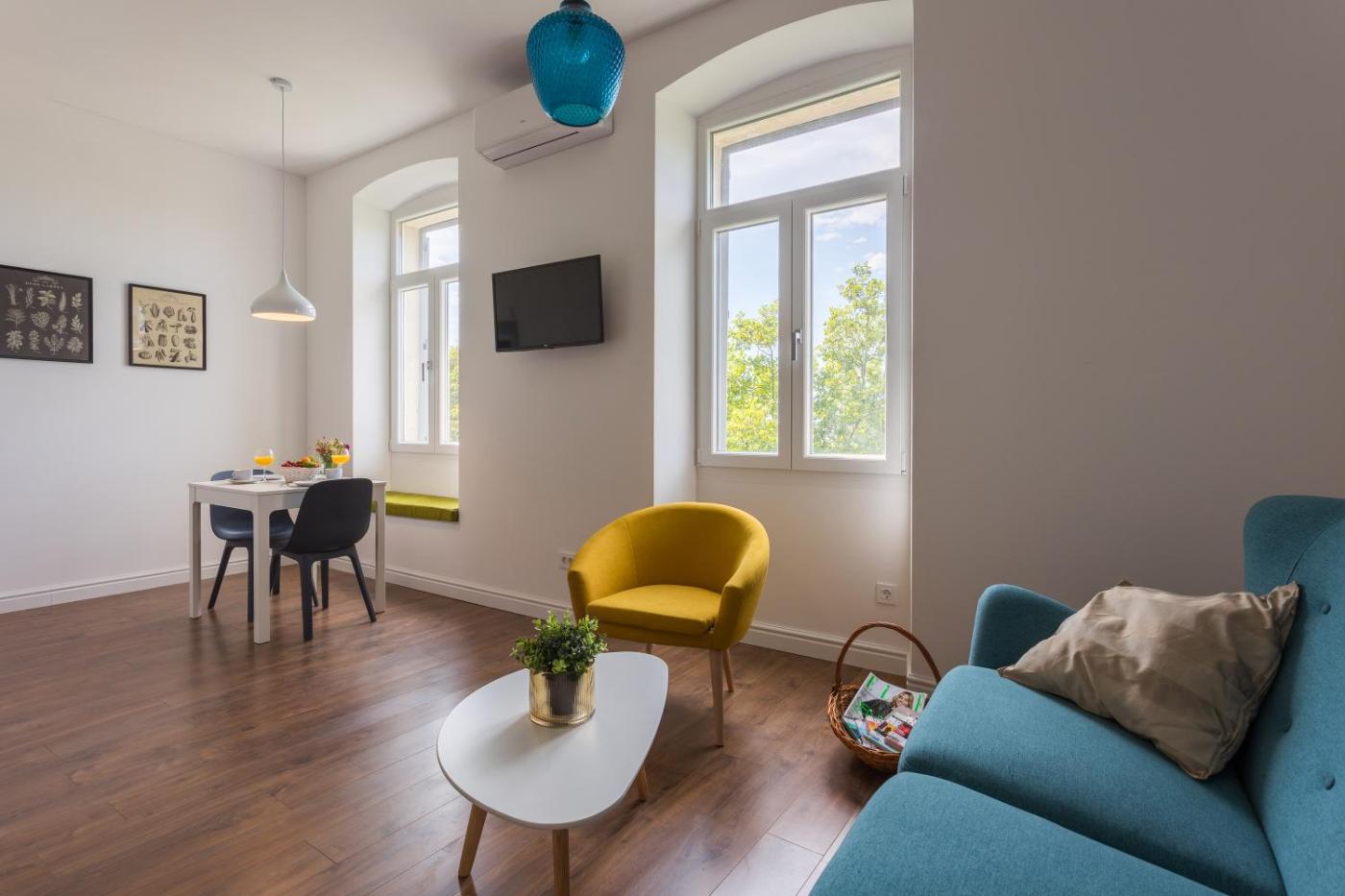 One-Bedroom Apartment. Featuring a private entrance, this air-conditioned apartment is comprised of a kitchen, 1 bedroom and 1 bathroom with a walk-in shower and a hairdryer. The well-fitted kitchen features a refrigerator, a microwave, a toaster and an electric kettle. The apartment offers a washing machine, a seating area, a dining area, a flat-screen TV, as well as garden views. The unit offers 1 bed.