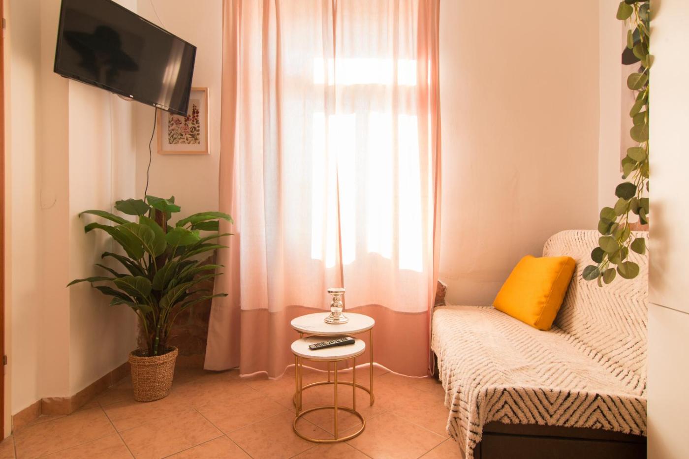 One-Bedroom Apartment. This air-conditioned apartment comprises 1 living room, 1 separate bedroom and 1 bathroom with a shower. Meals can be prepared in the well-fitted kitchen, which comes with a stovetop, a refrigerator, kitchenware and an oven. The apartment provides soundproof walls, a tea and coffee maker, a seating area, a flat-screen TV with satellite channels, as well as ancourtyard view. The unit offers 3 beds.