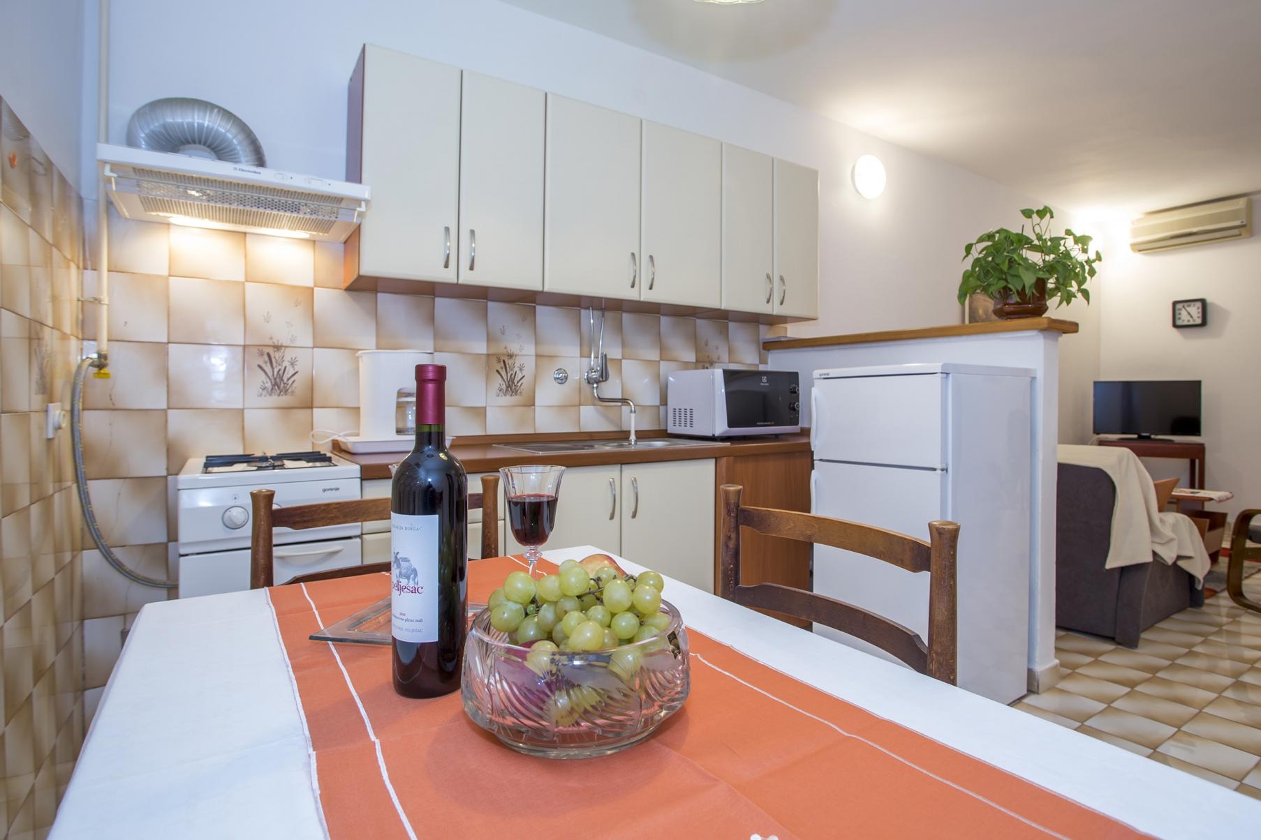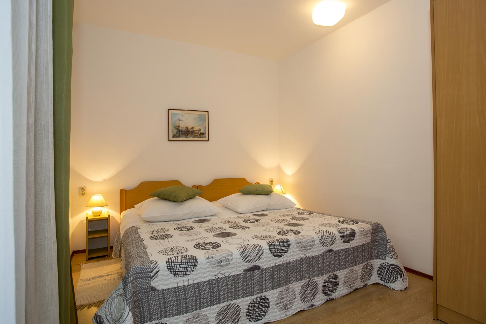 Apartment can accommodate 4 guests. Beds are situated in 3 sleeping rooms, within 61m2. Guests can use a private terrace to enjoy the warm summer evenings. Food can be prepared using barbecue which is shared with other guests too. INCLUDED IN THE PRICE: tourist tax, final cleaning, air-conditioning, parking, internet, iron, hairdryer. The availability of additional services for your chosen dates of stay, as well as their prices (if none are listed) must be checked ahead of time. Any additional services not shown in the price calculation are payable directly to the property owner and only if used by the visitor.