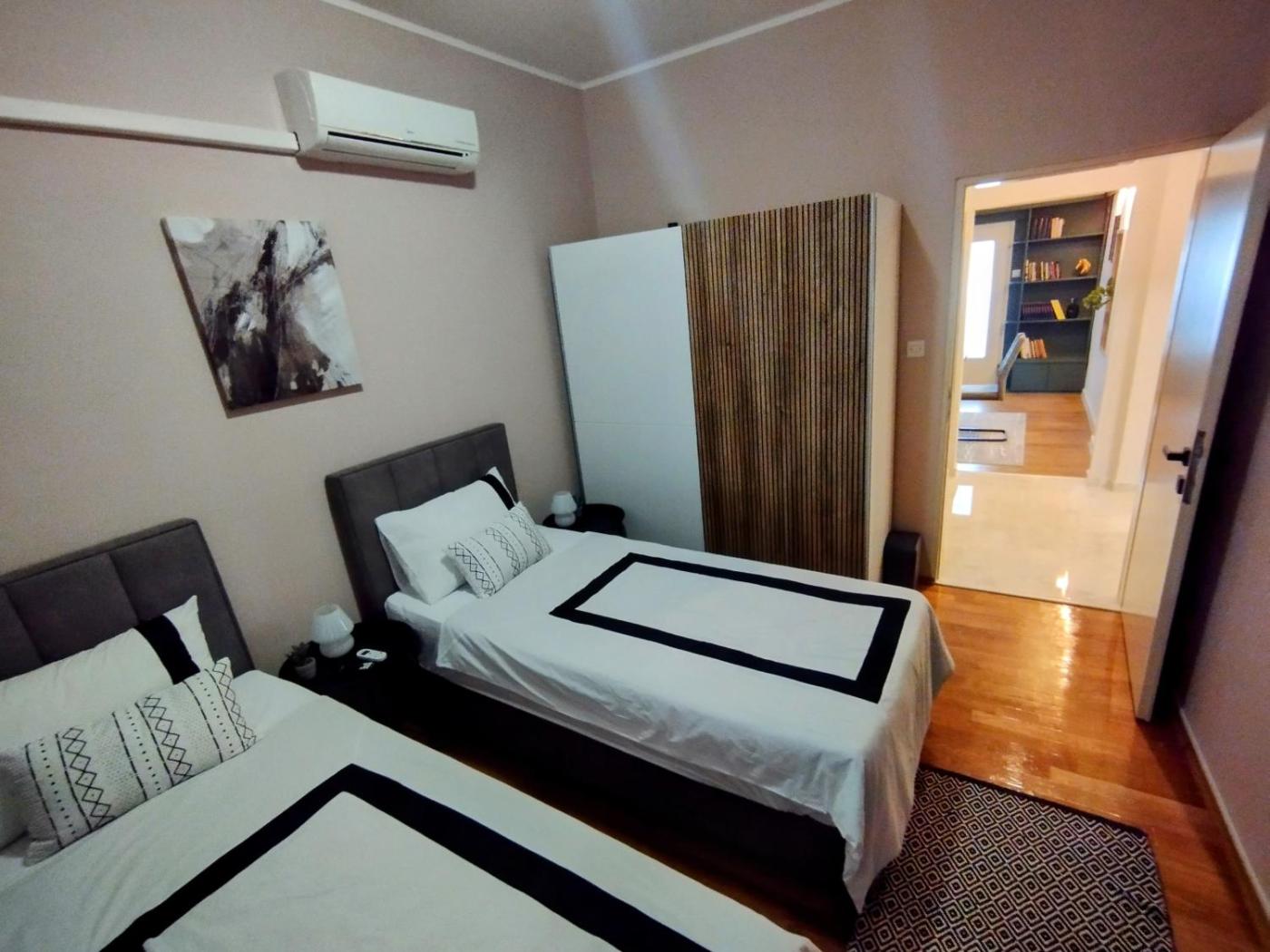 Three-Bedroom Deluxe Apartment. Featuring a private entrance, this spacious apartment also consists of 3 bedrooms, a seating area and 2 bathrooms with a shower and a hairdryer. Guests will find a stovetop, a refrigerator, a dishwasher and kitchenware in the kitchen. The apartment also offers a barbecue. The air-conditioned apartment provides a flat-screen TV, a washing machine, a tea and coffee maker, a dining area as well as city views. The unit offers 4 beds.