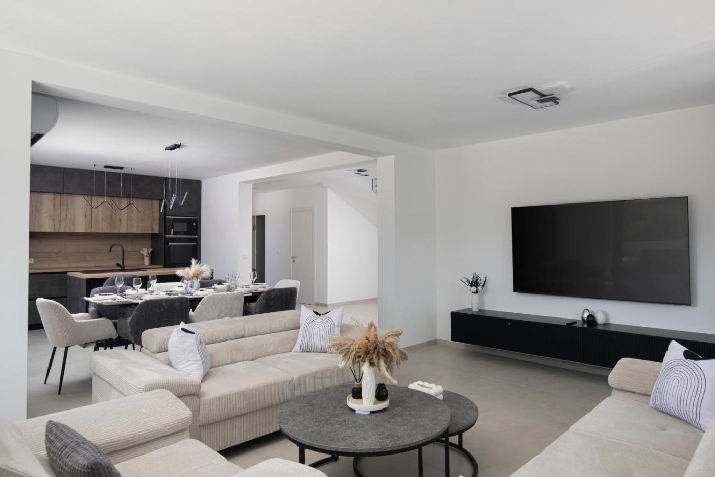 Villa. The private pool is a top feature of this villa. Boasting a private entrance, this air-conditioned villa comes with 1 living room, 4 separate bedrooms and 2 bathrooms with a walk-in shower and a bidet. Guests can make meals in the kitchen that features a stovetop, a refrigerator, a dishwasher and an oven. The spacious villa features a washing machine, soundproof walls, a tea and coffee maker, a flat-screen TV with streaming services, as well as garden views. The unit has 6 beds.