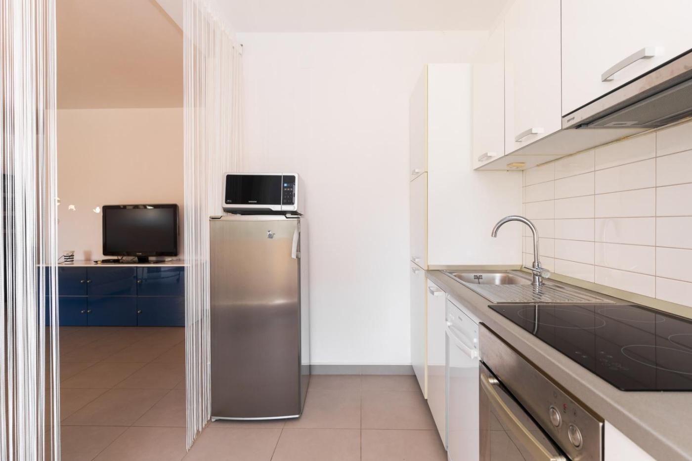 One-Bedroom Apartment. The air-conditioned apartment features 1 bedroom and 1 bathroom with a bath or a shower and a hairdryer. Meals can be prepared in the kitchen, which comes with a stovetop, a refrigerator, a dishwasher and kitchenware. This apartment has a washing machine, a coffee machine, a flat-screen TV and a balcony. The unit offers 1 bed. ;