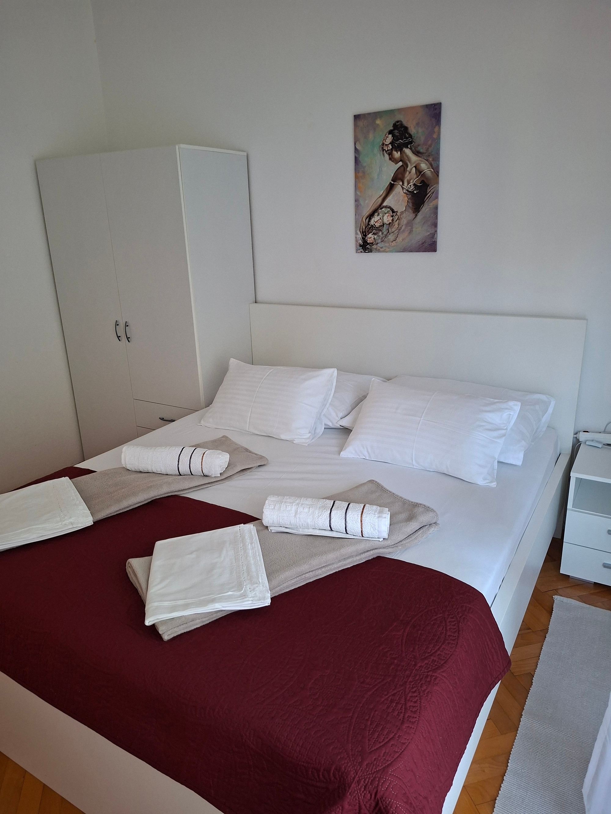 Room can accommodate 2 guests. Beds are situated in 1 sleeping rooms, within 20m2. Guests can use a private balcony to enjoy the warm summer evenings. Food can be prepared using barbecue which is shared with other guests too. Reserved accommodation unit is a room with its own bathroom and there is no usage of kitchen. Reserved accommodation unit has a shared terrace. INCLUDED IN THE PRICE: tourist tax, final cleaning, air-conditioning, parking, internet, iron, ironing board, hairdryer. OPTIONAL ADDITIONAL COSTS: boat mooring (€5.00 per night). The availability of additional services for your chosen dates of stay, as well as their prices (if none are listed) must be checked ahead of time. Any additional services not shown in the price calculation are payable directly to the property owner and only if used by the visitor.
