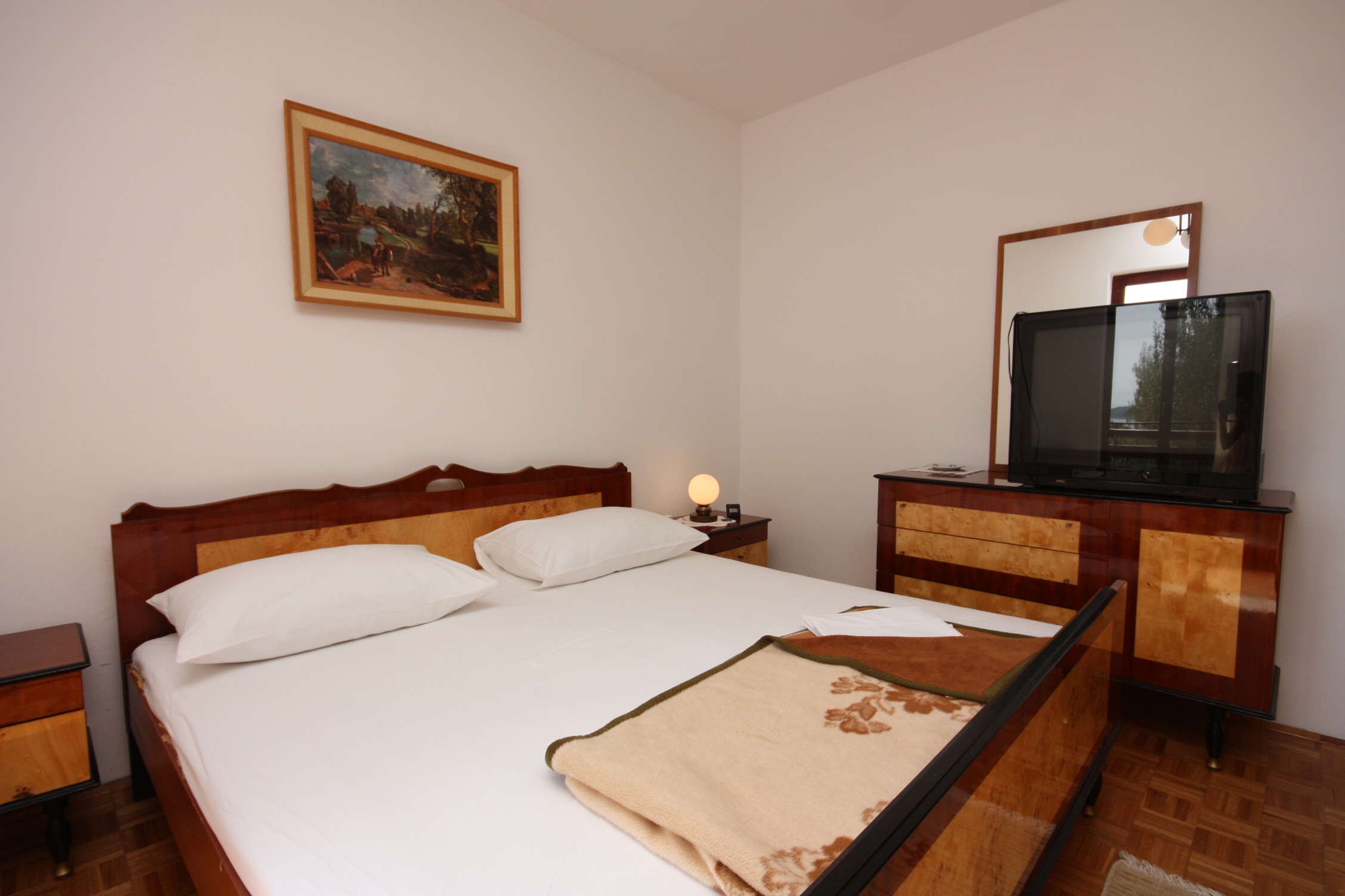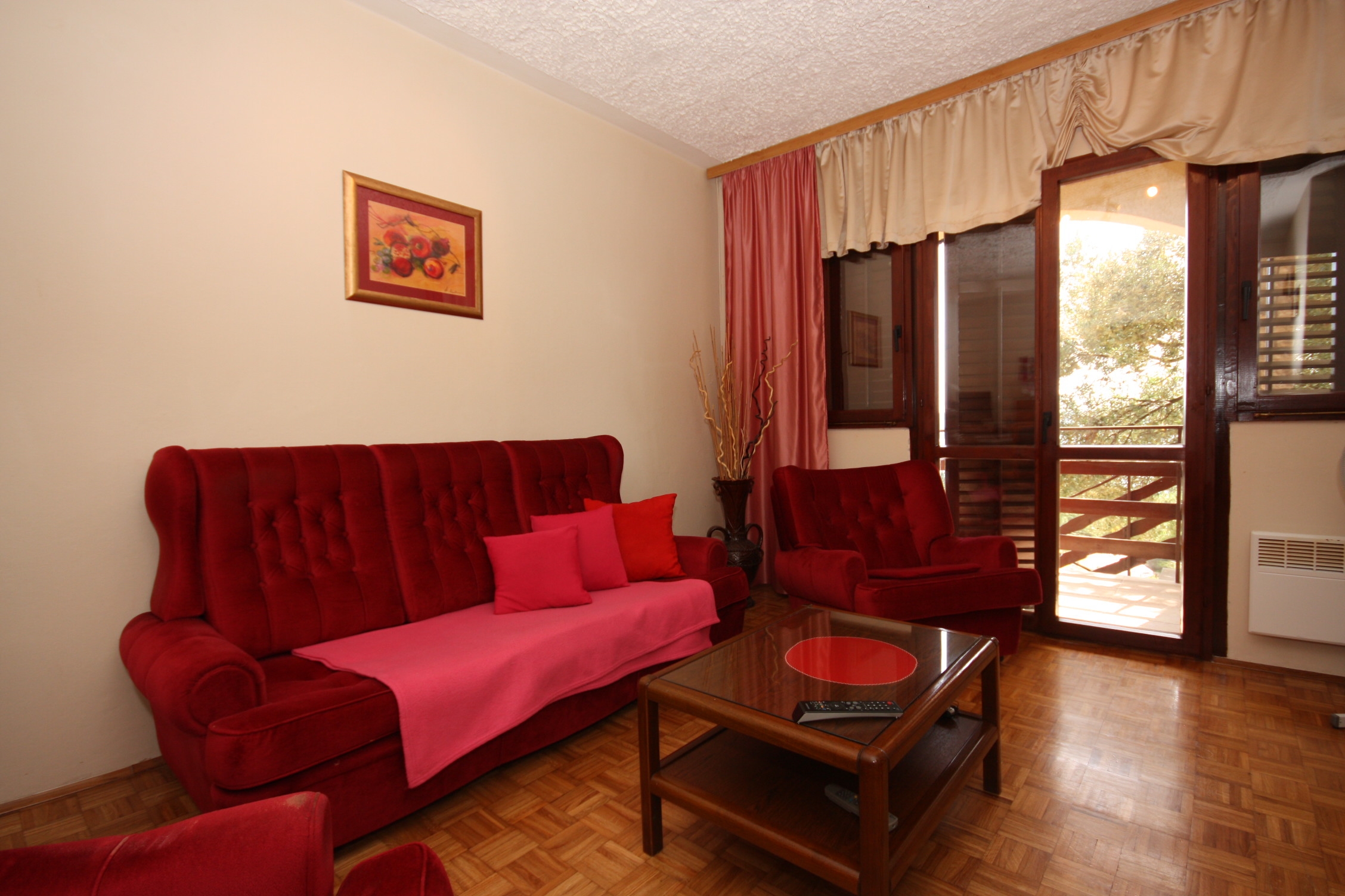 Apartment can accommodate 6 guests. Beds are situated in 3 sleeping rooms, within 88m2. Guests can use a private terrace to enjoy the warm summer evenings. The apartment offers the sea view. Food can be prepared using barbecue which is shared with other guests too. INCLUDED IN THE PRICE: tourist tax, final cleaning, air-conditioning, parking, internet, iron, ironing board, hairdryer. OBLIGATORY ADDITIONAL COSTS: short stay fee (surcharge depending on a number of booked nights: 30% - 1, 20% - 2, 10% - 3). The availability of additional services for your chosen dates of stay, as well as their prices (if none are listed) must be checked ahead of time. Any additional services not shown in the price calculation are payable directly to the property owner and only if used by the visitor.