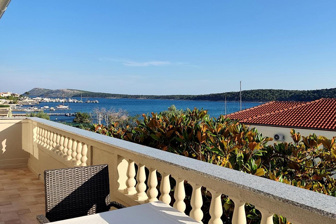 Two-Bedroom Apartment with Balcony and Sea View. The air-conditioned apartment has 2 bedrooms and 1 bathroom with a shower and a hairdryer. Guests will find a stovetop, a refrigerator, kitchenware and an oven in the fully equipped kitchen. The apartment also comes with a barbecue. Boasting a balcony with sea views, this apartment also features a tea and coffee maker and a flat-screen TV with satellite channels. The unit has 2 beds. ;