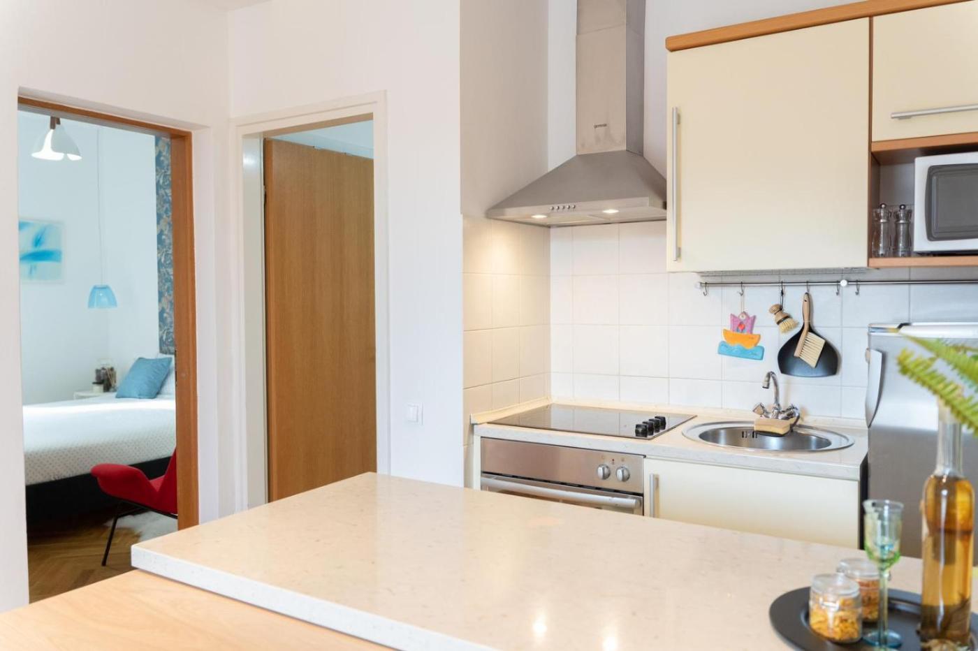 Two-Bedroom Apartment. Featuring a private entrance, this air-conditioned apartment consists of 1 living room, 2 separate bedrooms and 1 bathroom with a shower and a bidet. Guests will find a stovetop, a refrigerator, kitchenware and an oven in the kitchen. The apartment also offers a barbecue. Boasting a terrace with sea views, this apartment also provides a tea and coffee maker and a flat-screen TV with cable channels. The unit offers 3 beds.