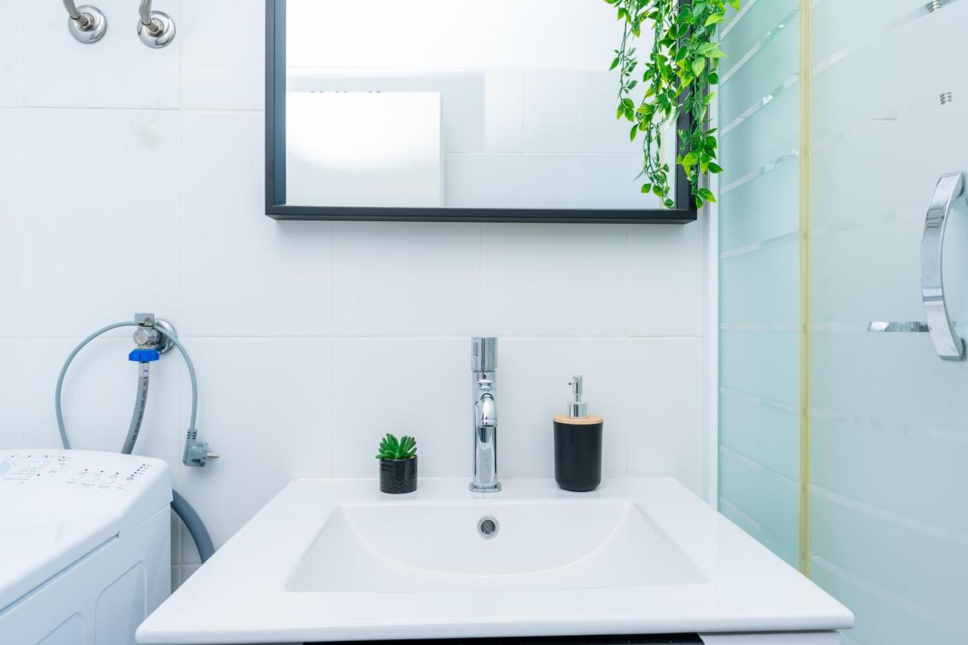 Three-Bedroom Apartment with Sea View. This spacious apartment comprises 1 living room, 3 separate bedrooms and 2 bathrooms with a walk-in shower. Guests can make meals in the kitchen that is equipped with a dishwasher, an oven, a microwave and a toaster. The air-conditioned apartment provides a flat-screen TV, a washing machine, a seating area, a dining area as well as sea views. The unit offers 5 beds.