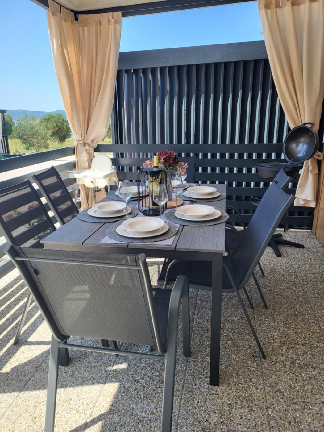 Two-Bedroom House. Featuring a private entrance, this air-conditioned holiday home comprises 1 living room, 2 separate bedrooms and 1 bathroom with a shower and a hairdryer. Guests will find a stovetop, a refrigerator, a dishwasher and kitchenware in the well-fitted kitchen. The holiday home also provides guests with a barbecue. Boasting a terrace with sea views, this holiday home also provides a coffee machine and a flat-screen TV with streaming services. The unit offers 5 beds.