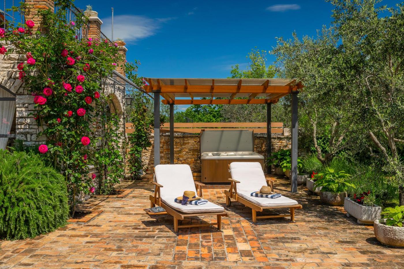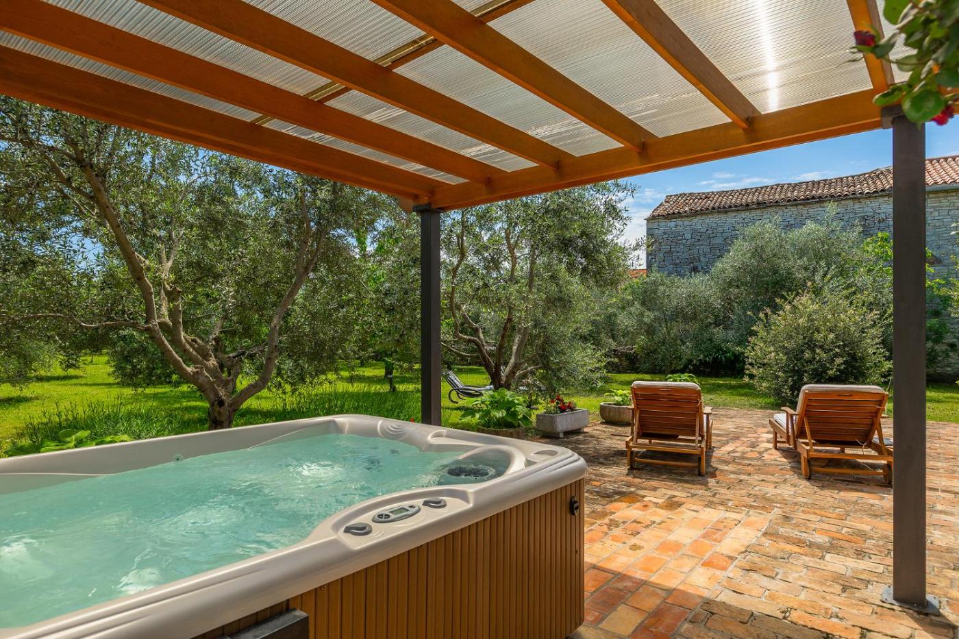 Villa. This villas standout features are the hot tub, sauna and fireplace. Boasting a private entrance, this air-conditioned villa includes 1 living room, 2 separate bedrooms and 2 bathrooms with a shower and a bidet. Guests will find a stovetop, a refrigerator, a dishwasher and kitchenware in the well-fitted kitchen. The villa also features a barbecue. Featuring a terrace with garden views, this villa also offers a washing machine and a flat-screen TV with satellite channels. The unit has 2 beds.