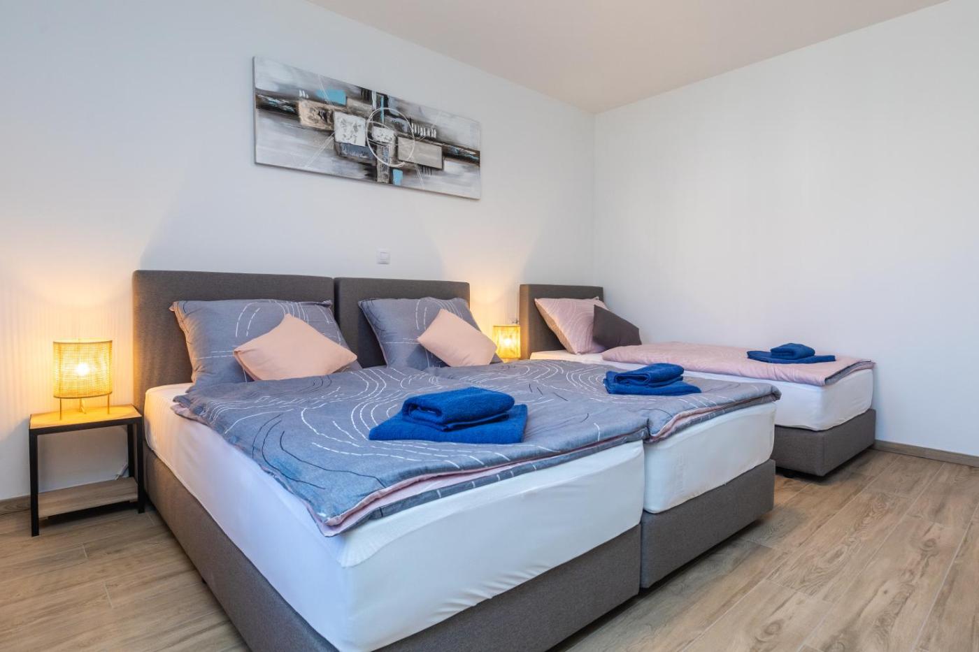 Two-Bedroom Apartment. This apartment features a private pool. This spacious apartment is comprised of 1 living room, 2 separate bedrooms and 1 bathroom with a bath. The well-fitted kitchen features a stovetop, a refrigerator, a dishwasher and kitchenware. The air-conditioned apartment offers a flat-screen TV, a washing machine, a tea and coffee maker, a dining area as well as garden views. The unit offers 5 beds.