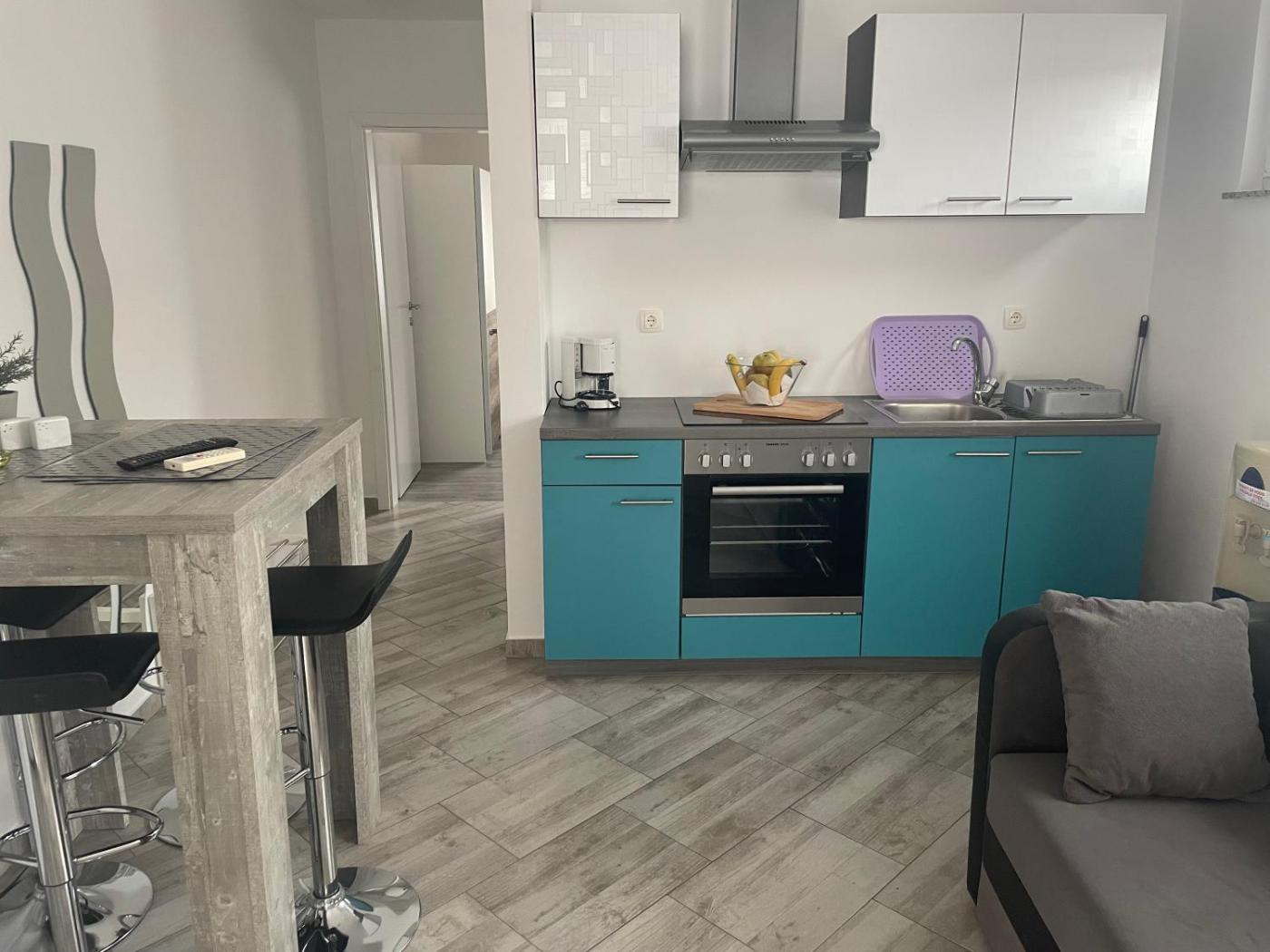 The apartment provides guests with a terrace, garden views, a seating area, satellite flat-screen TV, a fully equipped kitchen with an oven and a microwave, and a private bathroom with walk-in shower and a hair dryer. A fridge, a stovetop and kitchenware are also provided, as well as a coffee machine and a kettle. Guests can enjoy a meal at an outdoor dining area at the apartment.