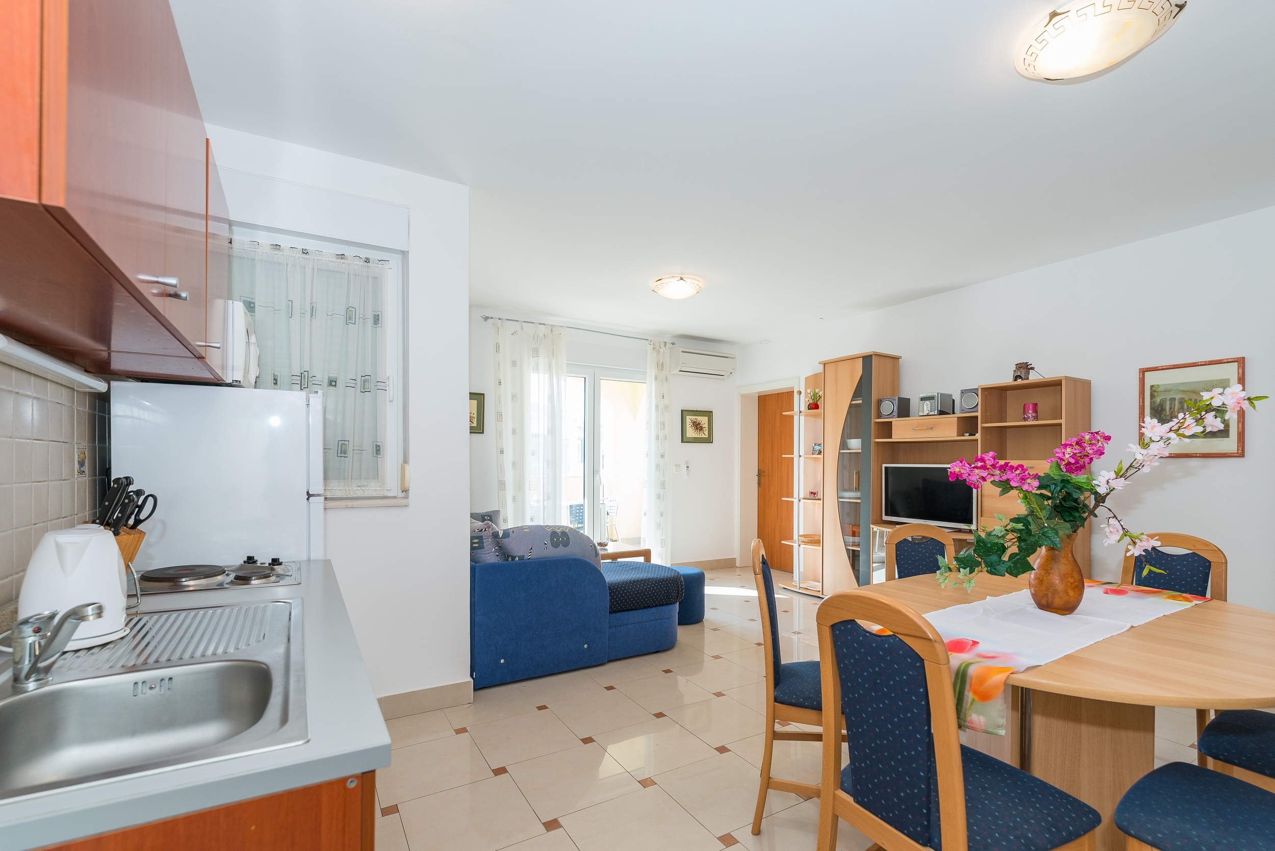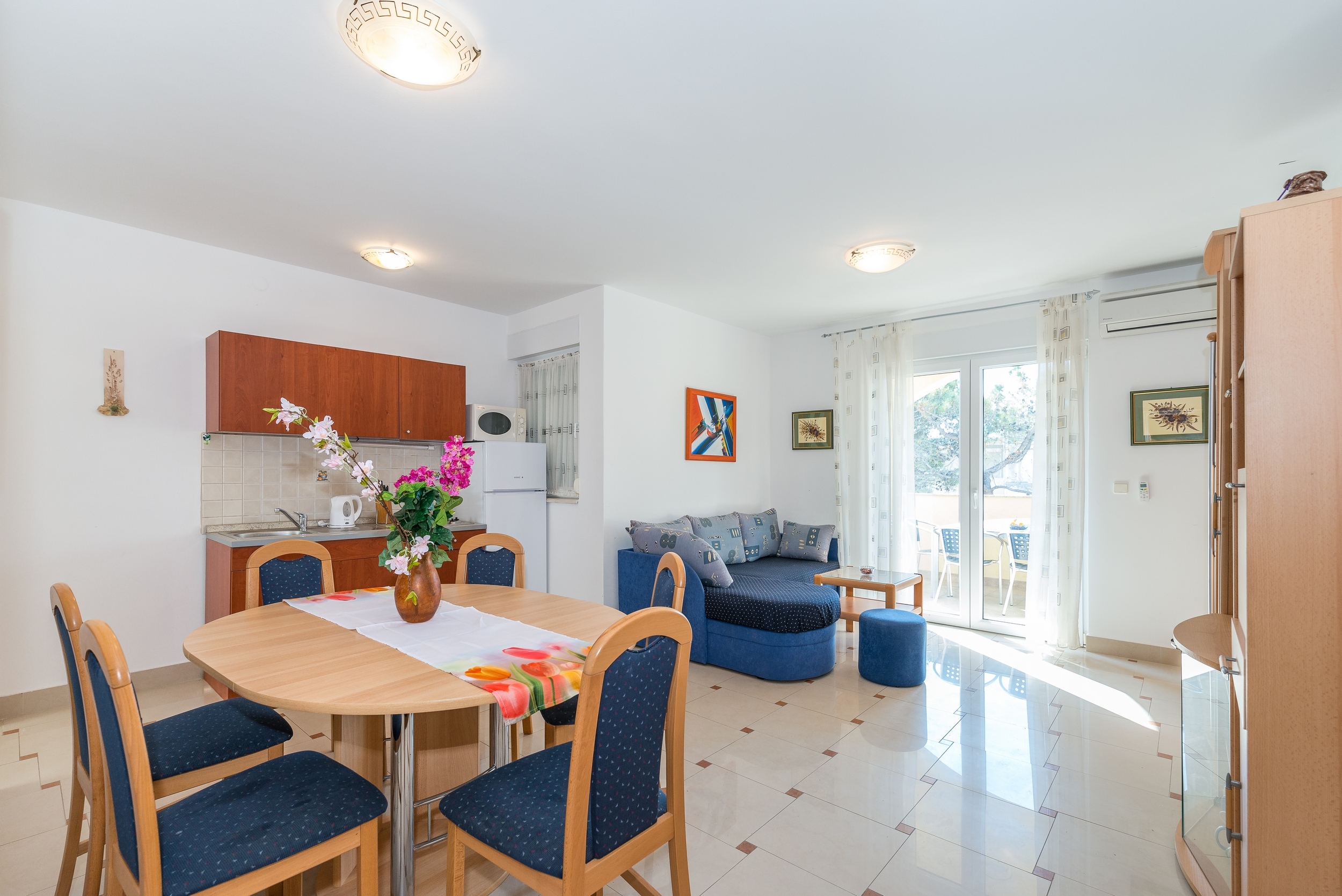 Apartment can accommodate 6 guests. Beds are situated in 3 sleeping rooms, but also in the living room, within 60m2. Guests can use a private balcony to enjoy the warm summer evenings. The apartment offers the sea view. Food can be prepared using barbecue which is shared with other guests too. INCLUDED IN THE PRICE: tourist tax, final cleaning, air-conditioning, parking, internet, baby cot, hairdryer. OBLIGATORY ADDITIONAL COSTS: short stay fee (surcharge depending on a number of booked nights: 30% - 1, 20% - 2, 10% - 3). The availability of additional services for your chosen dates of stay, as well as their prices (if none are listed) must be checked ahead of time. Any additional services not shown in the price calculation are payable directly to the property owner and only if used by the visitor.