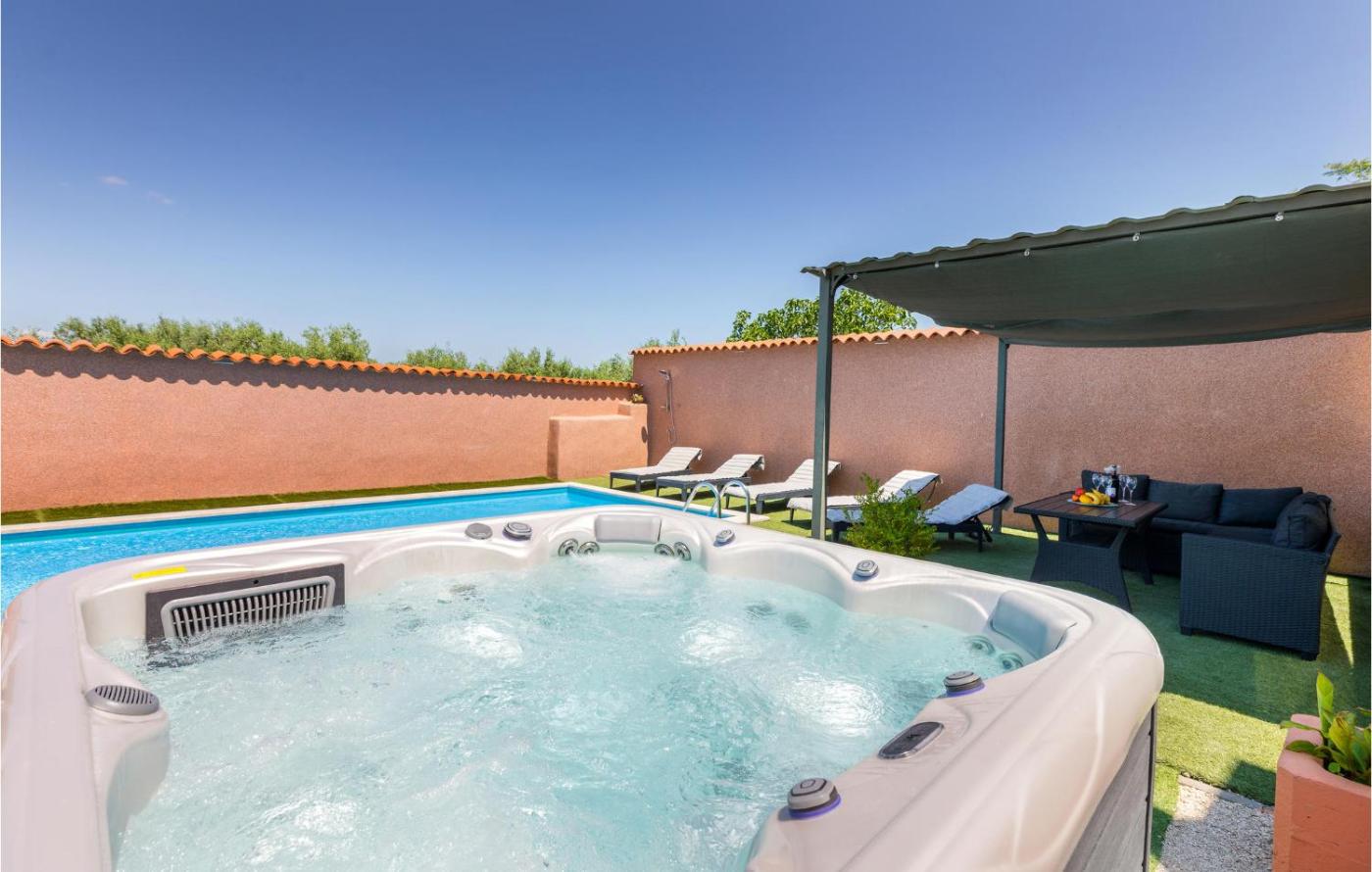 Situated in Vodnjan, Gorgeous Home In Vodnjan With Kitchen offers a private pool. This 4-star holiday home features a spa experience, with its hot tub and spa centre. There is a sun terrace and guests can make use of free WiFi and free private parking.