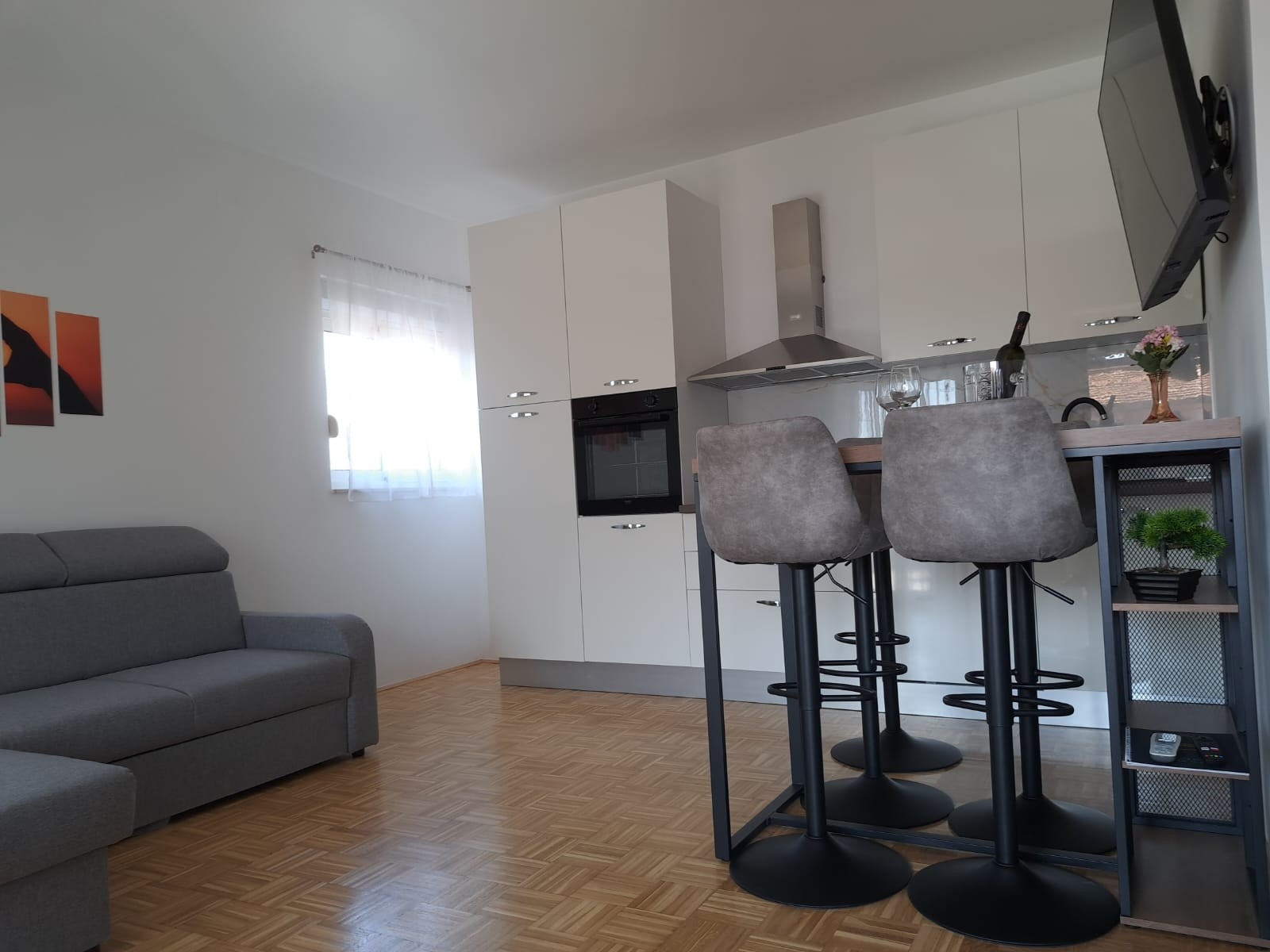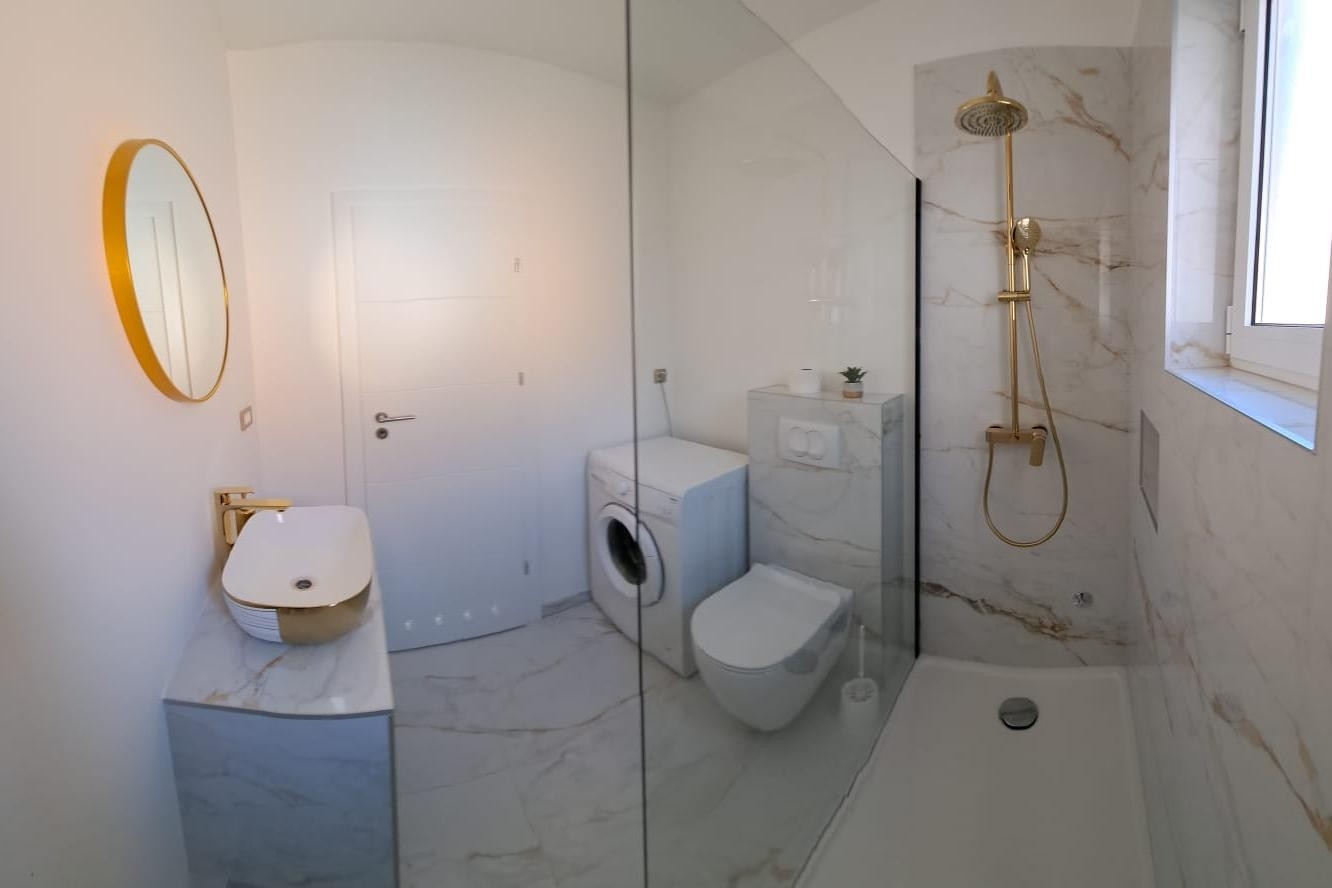Apartment can accommodate 5 guests. Beds are situated in 2 sleeping rooms, within 63m2. Guests can use a private terrace to enjoy the warm summer evenings. Food can be prepared using barbecue which is shared with other guests too. INCLUDED IN THE PRICE: tourist tax, final cleaning, air-conditioning, parking, internet, iron, ironing board, hairdryer. The availability of additional services for your chosen dates of stay, as well as their prices (if none are listed) must be checked ahead of time. Any additional services not shown in the price calculation are payable directly to the property owner and only if used by the visitor.