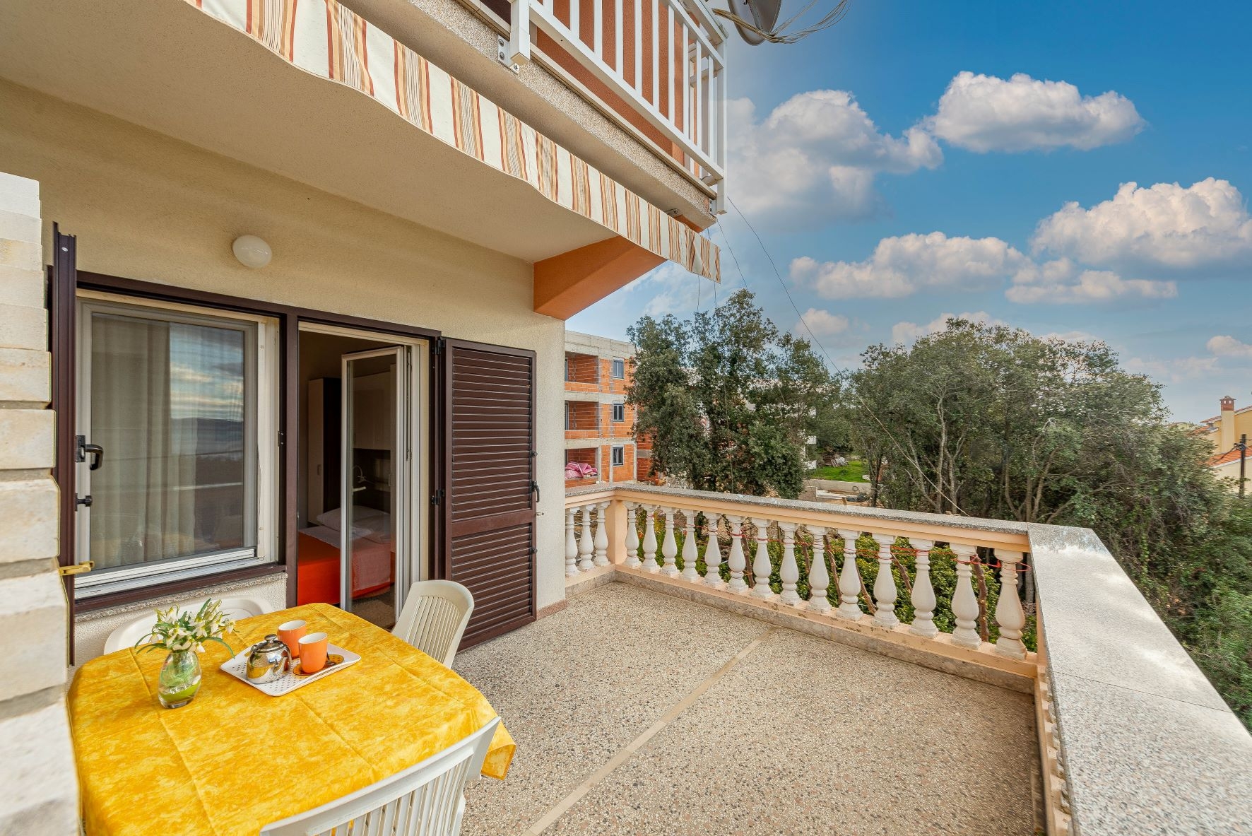 Apartment can accommodate 3 guests. Beds are situated in 1 sleeping rooms, but also in the dining room, within 25m2. Guests can use a private terrace to enjoy the warm summer evenings. The apartment offers the sea view. Food can be prepared using barbecue which is shared with other guests too. INCLUDED IN THE PRICE: tourist tax, final cleaning, air-conditioning, parking, internet. OPTIONAL ADDITIONAL COSTS: additional bed (€10.00 per night). The availability of additional services for your chosen dates of stay, as well as their prices (if none are listed) must be checked ahead of time. Any additional services not shown in the price calculation are payable directly to the property owner and only if used by the visitor. Discounts to the base price: free day 14=13 (for reservations of 14 or more days you get one free day for the stay until 31122026).
