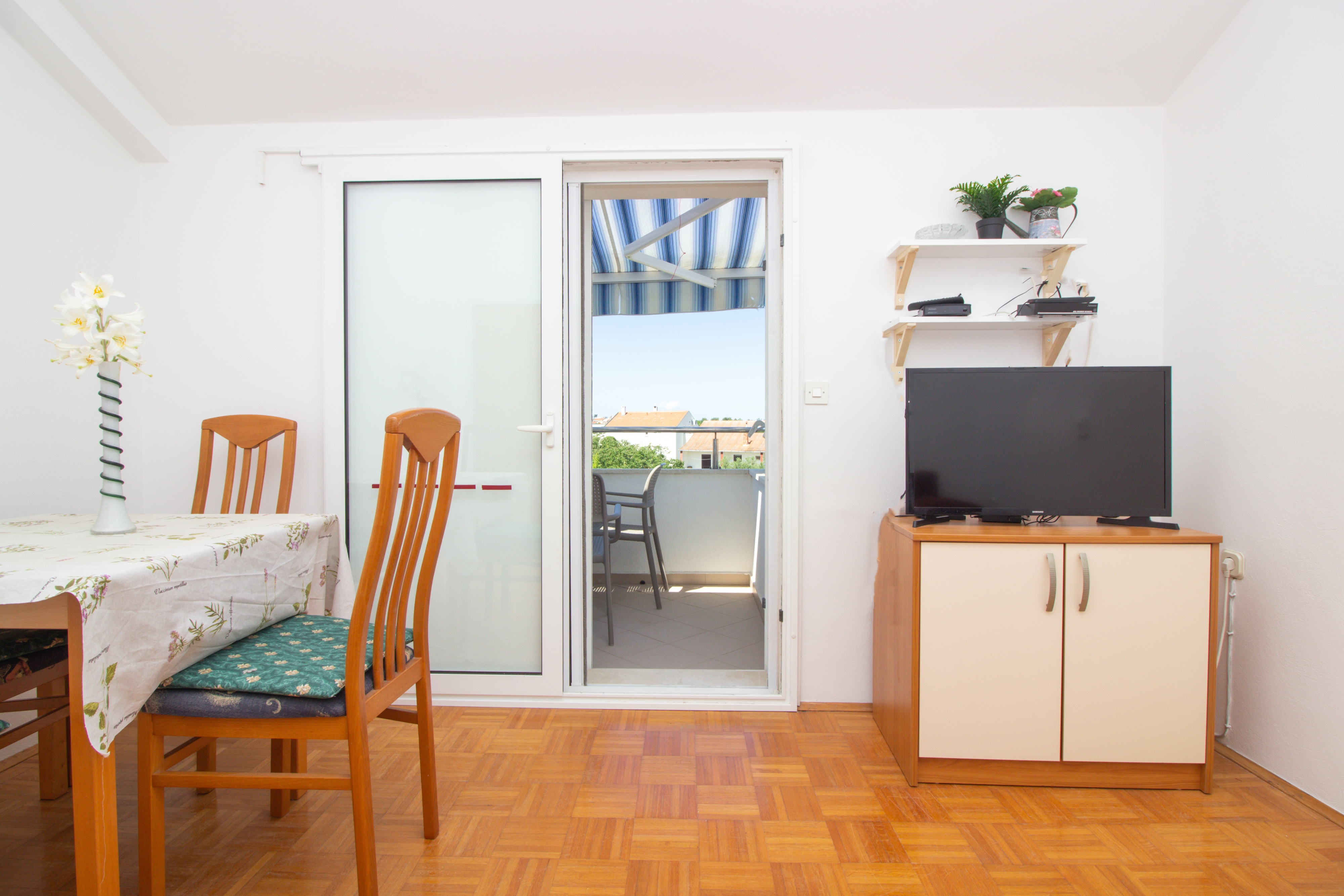 Apartment can accommodate 4 guests. Beds are situated in 1 sleeping rooms, but also in the living room, within 33m2. Guests can use a private terrace to enjoy the warm summer evenings. The apartment offers the sea view. Food can be prepared using barbecue which is shared with other guests too. INCLUDED IN THE PRICE: tourist tax, final cleaning, air-conditioning, parking, internet, boat mooring, iron, ironing board, hairdryer. OBLIGATORY ADDITIONAL COSTS: short stay fee (surcharge depending on a number of booked nights: 30% - 1, 20% - 2, 10% - 3). OPTIONAL ADDITIONAL COSTS: additional bed (€5.00 per night). The availability of additional services for your chosen dates of stay, as well as their prices (if none are listed) must be checked ahead of time. Any additional services not shown in the price calculation are payable directly to the property owner and only if used by the visitor.
