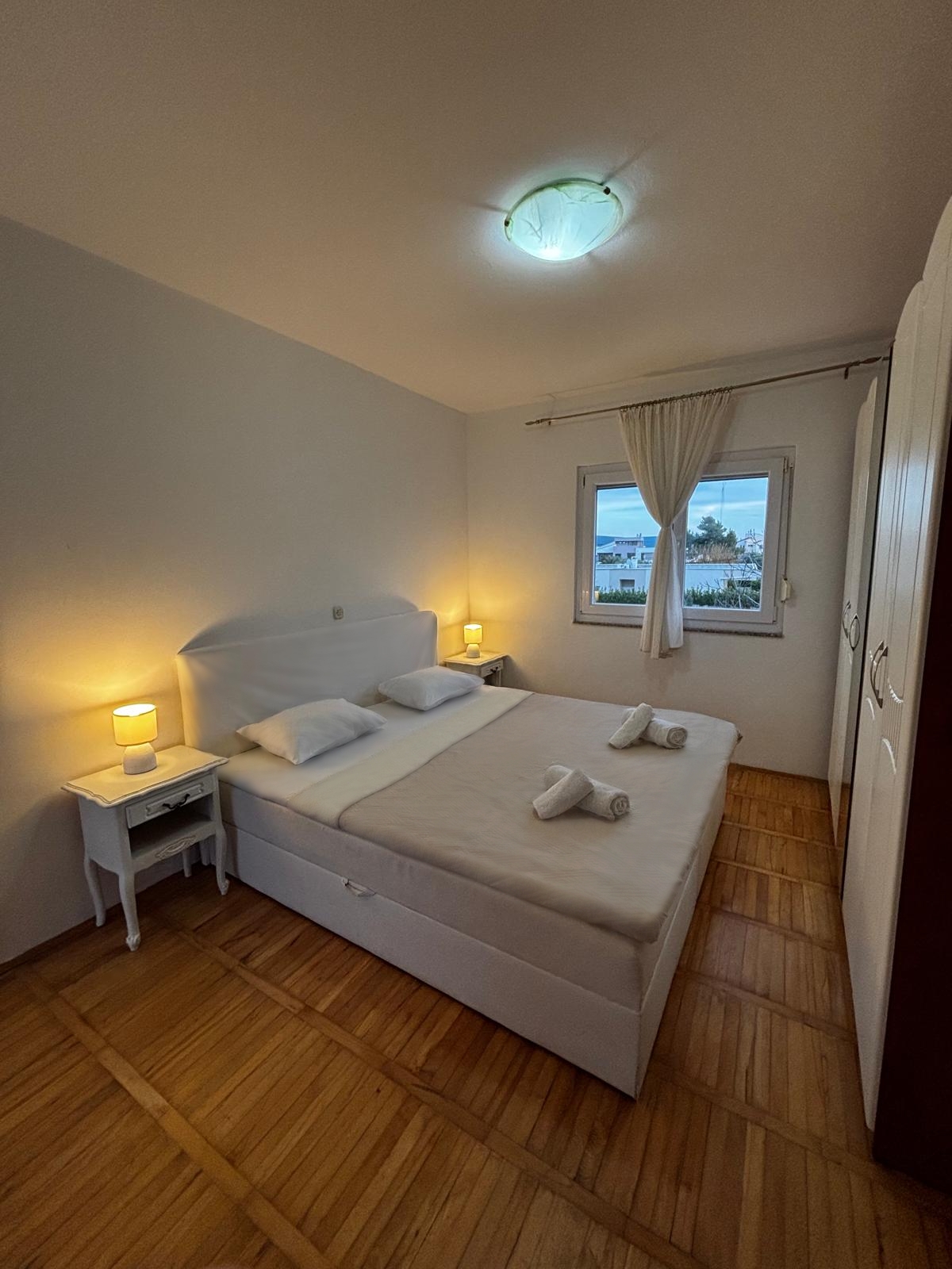 Apartment can accommodate 4 guests. Beds are situated in 1 sleeping rooms, but also in the dining room, within 28m2. Guests can use a private terrace to enjoy the warm summer evenings. Food can be prepared using barbecue which is shared with other guests too. This accommodation unit welcomes pets at an additional charge. INCLUDED IN THE PRICE: tourist tax, final cleaning, air-conditioning, parking, internet, hairdryer. OBLIGATORY ADDITIONAL COSTS: short stay fee (surcharge depending on a number of booked nights: 30% - 1, 20% - 2, 10% - 3). OPTIONAL ADDITIONAL COSTS: pets (€5.00 per night). The availability of additional services for your chosen dates of stay, as well as their prices (if none are listed) must be checked ahead of time. Any additional services not shown in the price calculation are payable directly to the property owner and only if used by the visitor.