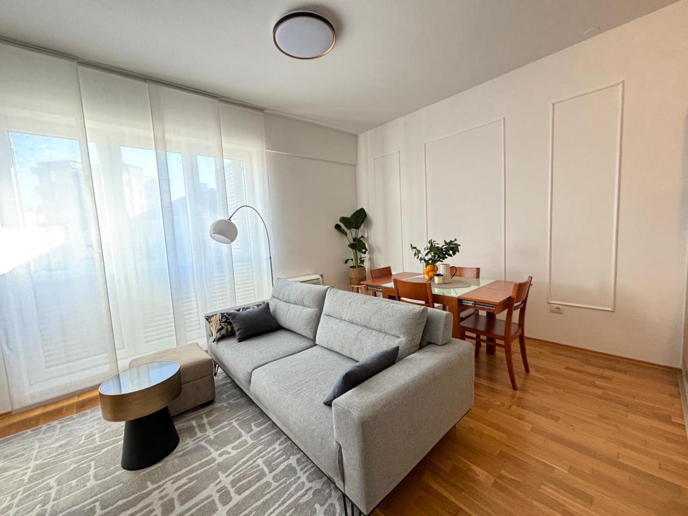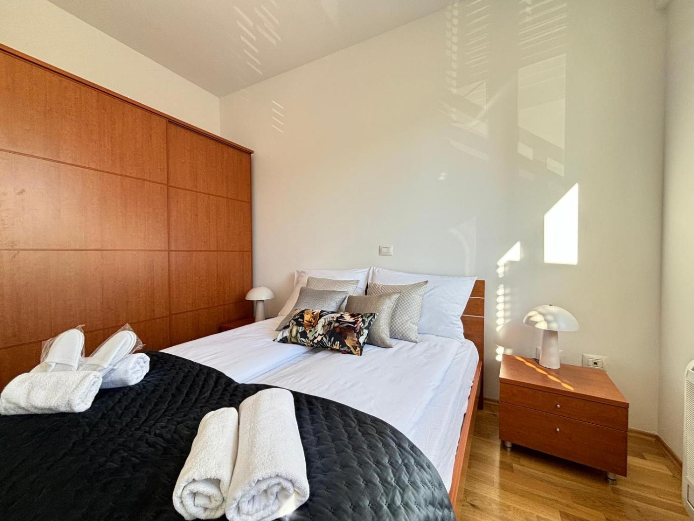 One-Bedroom Apartment. Boasting a private entrance, this air-conditioned apartment comes with 1 living room, 1 separate bedroom and 1 bathroom with a bath and a shower. In the well-fitted kitchen, guests will find a stovetop, a refrigerator, kitchenware and an oven. The apartment features a flat-screen TV with streaming services, a washing machine, soundproof walls, a tea and coffee maker as well as city views. The unit has 2 beds.