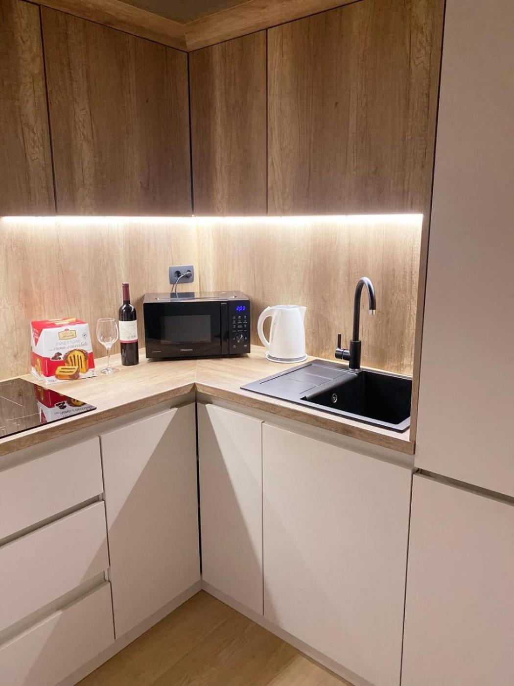 King Studio. Providing free toiletries, this studio includes a private bathroom with a walk-in shower. Guests can make meals in the kitchen that is equipped with a stovetop, a refrigerator, a dishwasher and kitchenware. The studio features parquet floors, a seating area with a flat-screen TV with streaming services, air conditioning, a washing machine, as well as a private entrance. The unit offers 1 bed. ;