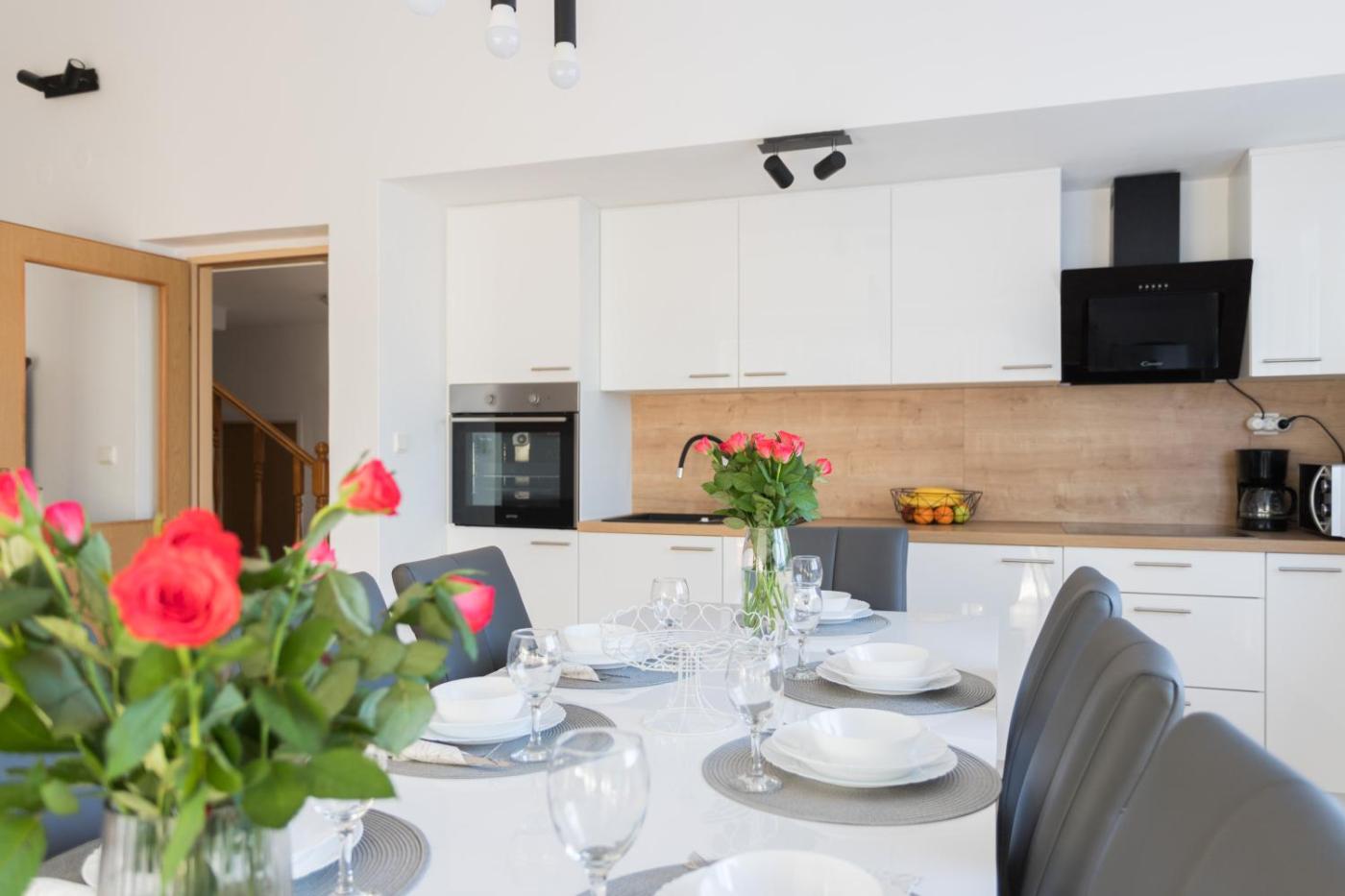Five-Bedroom House. The private pool is the standout feature of this holiday home. Boasting a private entrance, this air-conditioned holiday home comes with 1 living room, 5 separate bedrooms and 3 bathrooms with a bath and a shower. Guests will find a stovetop, a refrigerator, a dishwasher and kitchenware in the kitchen. The holiday home also includes a barbecue. The spacious holiday home features a washing machine, a coffee machine, a seating area as well as a terrace with garden views. The unit has 5 beds.